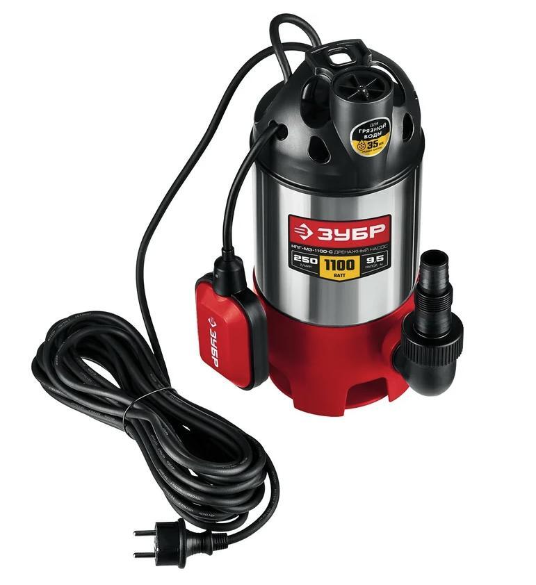 Насос дренажный ЗУБР НПГ-М3-1100-С — это универсальное и надёжное решение для откачки чистой и загрязнённой воды с частицами мягких фракций до 35 мм. Он отлично подойдёт для осушения подвалов, котлованов, бассейнов, дачных прудов и других ёмкостей, где скапливается вода. Корпус насоса выполнен из нержавеющей стали, что обеспечивает устойчивость к коррозии и гарантирует длительный срок службы даже в сложных условиях эксплуатации. Высокое качество материалов и комплектующих позволяет насосу стабильно работать в интенсивном режиме. Устройство оснащено двумя выходными патрубками и универсальным соединительным штуцером, подходящим для шлангов от 1" до 1¼" и для трубопроводов от G1" до G1½", что делает подключение простым и гибким. Поплавковый выключатель автоматически включает и отключает насос в зависимости от уровня воды, а возможность регулировки уровней включения и отключения даёт полный контроль над процессом. Для защиты от перегрева предусмотрен термопредохранитель, а износостойкая рабочая крыльчатка обеспечивает тихую и бесперебойную работу даже при перекачке загрязнённых жидкостей. Насос поставляется с 10-метровым кабелем, который позволяет использовать устройство на большой глубине без дополнительных удлинителей. НПГ-М3-1100-С — это практичный, мощный и долговечный помощник для бытовых и хозяйственных задач.