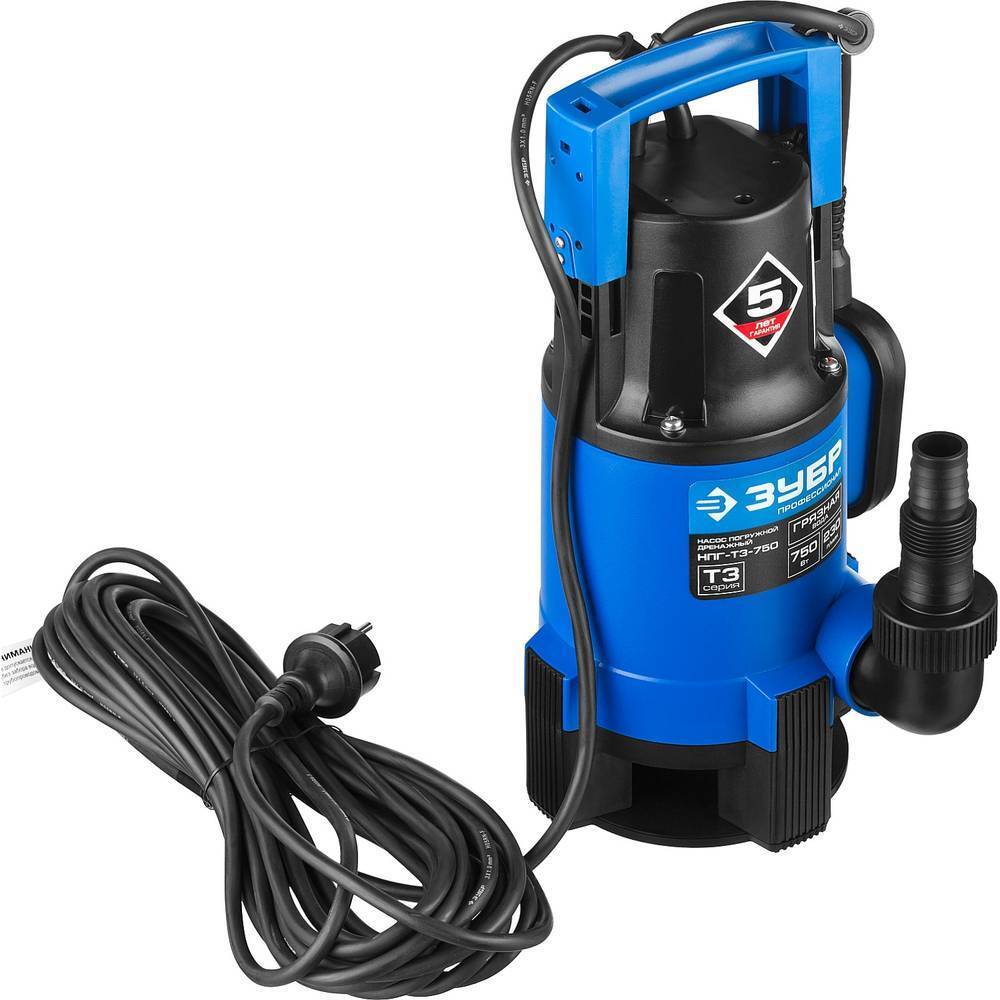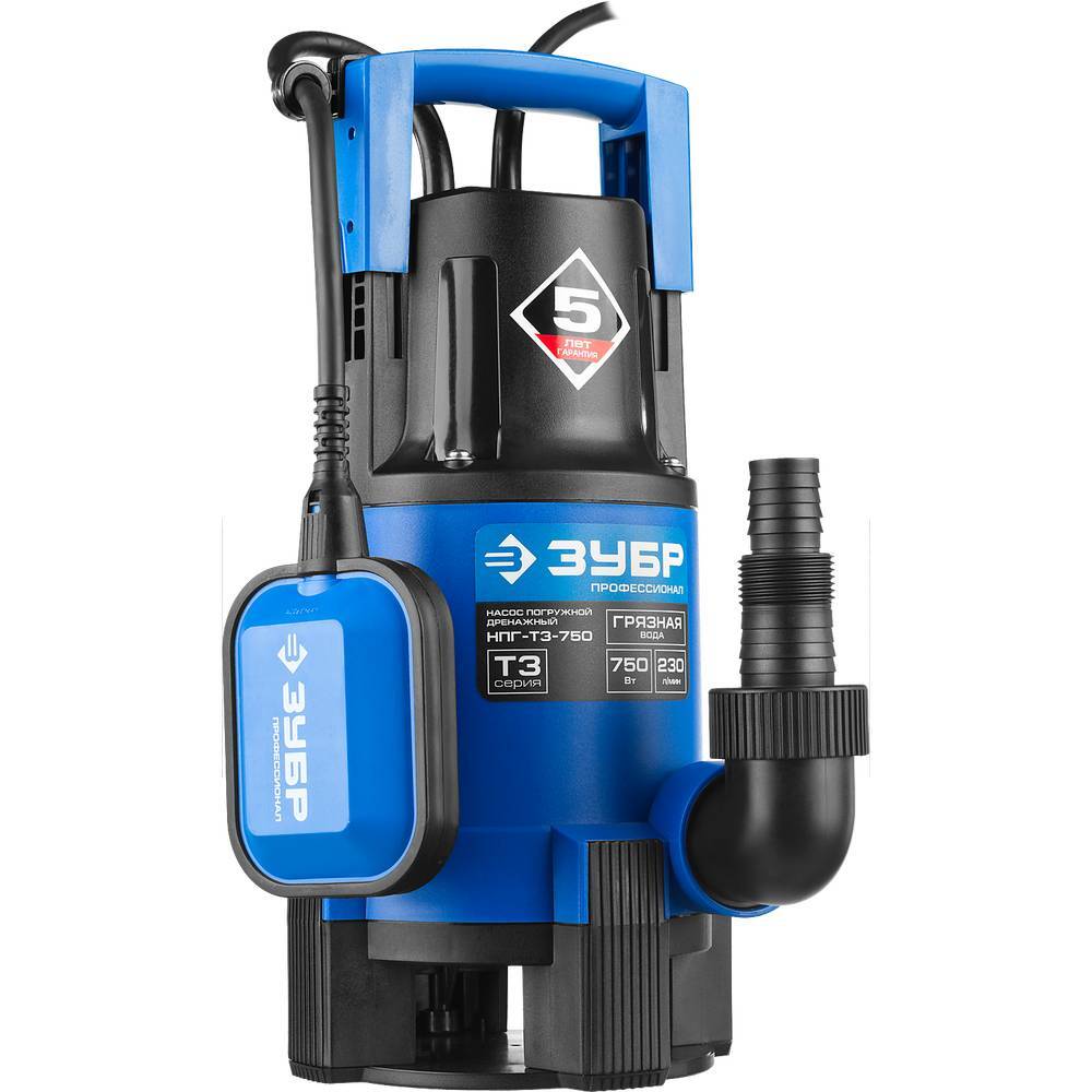 Насос дренажный ЗУБР НПГ-Т3-750 справляется с откачкой как чистой, так и загрязнённой воды с частицами до 35 мм — подходит для грязных подвалов, котлованов, садовых прудов и при паводках.
