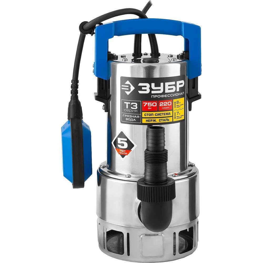 Насос дренажный ЗУБР НПГ-Т3-750-С используется для автоматического перекачивания воды из емкостей и водоемов, организации забора воды с колодцев, скважин и подачи на высоту.