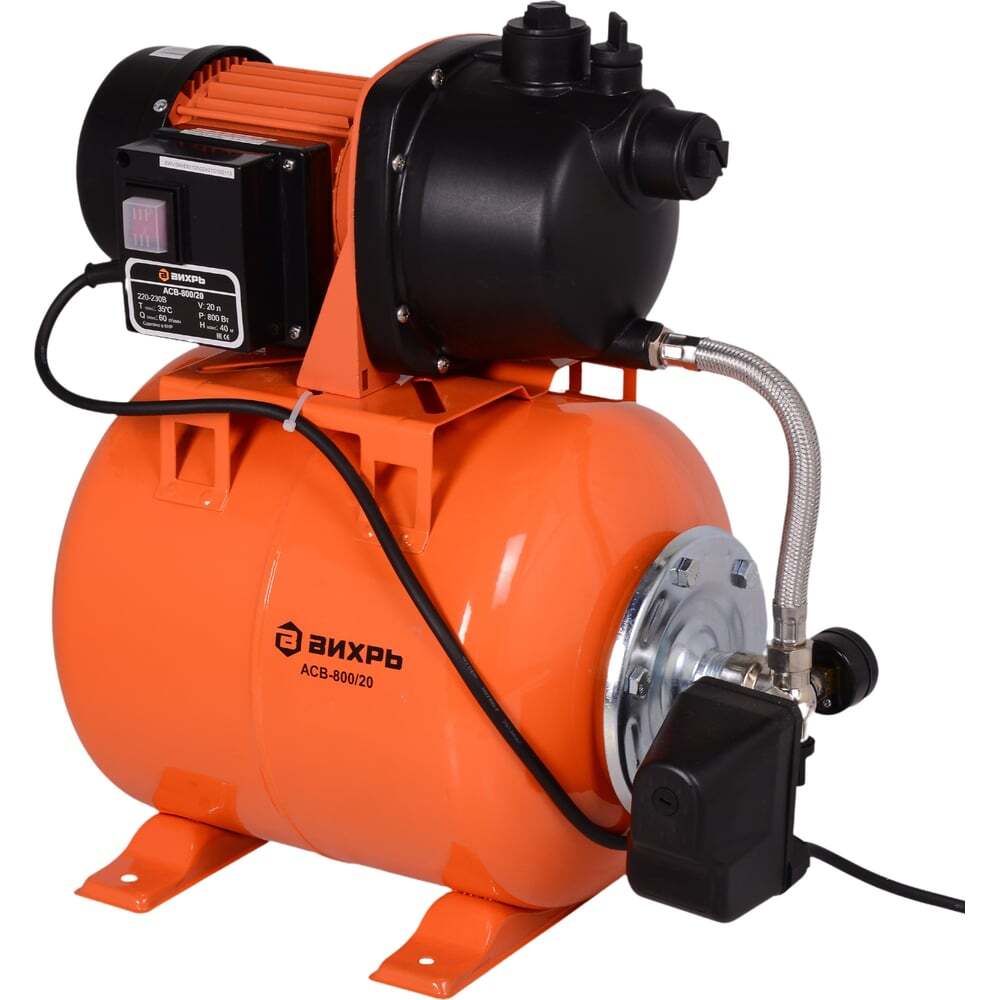 Автономная станция водоснабжения – беспроигрышный вариант для организации подачи воды в загородный дом, коттедж или на ферму. Во-первых, установив Вихрь АСВ 800/20, можно получить полностью автономную систему, которая сама включается и выключается, а также поддерживает необходимое давление. Во-вторых, насос в составе станции служит в разы дольше, благодаря наличию гидроаккумулятора.Кроме насоса, который работает на асинхронном однофазном электродвигателе, конструкция станции предполагает наличие манометра и реле, а также гидроаккумулятора. В последнем находится вода под давлением. Это позволяет постепенно отдавать ее в систему, не запуская насос каждый раз.Модель Вихрь АСВ-800/20 может обеспечивать снабжение водой до трех открытых водозаборных точек, при заборе с глубины до 5м и при длине магистрали до 5м. При заборе с глубины до 6м и при длине магистрали до 5м водоснабжение будет обеспечено для двух открытых водозаборных точек. При заборе с глубины до 7м и при длине магистрали до 5м станция обеспечит водоснабжение для одной точки.Автономная станция водоснабжения позволяет рационально организовать систему водоснабжения загородного дома или дачи. Все необходимые компоненты для автоматической работы Вихрь АСВ 800/20 уже имеет.