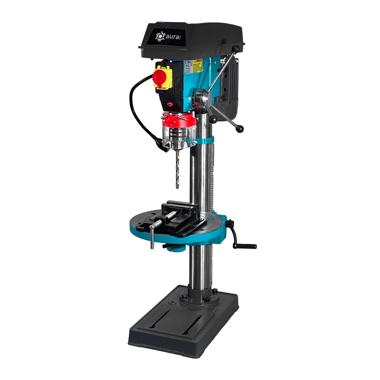 В условиях мелко-среднесерийного и крупного производства настольный сверлильный станок AURA CM-1316/380 находит широкое применение за счет своей многофункциональности, мощности и высокой производительности. Станок может быть использован практически в любых условиях — он работает от трёхфазной сети, имеет небольшие размеры и отличается невысокой потребляемой мощностью. Возможности станка расширены благодаря функциями поворота и наклона стола. Для удобства при эксплуатации станок оснащен лазерным указателем и яркой LED подсветкой рабочей зоны. Станок оборудован защитным экраном, который обеспечивает защиту оператора и при этом не закрывает обзор. Станок AURA CM-1316/380 комплектуется машинными тисками с шириной губок 100 мм.
