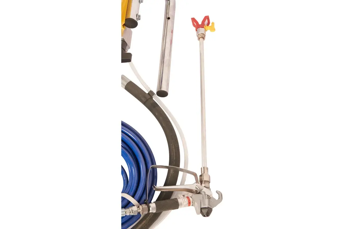 TOR GD-450 - оборудование для окраски под высоким давлением через окрасочный краскопульт безвоздушного распыления. Окрасочный агрегат безвоздушного распыления предназначен для использования на строительных площадках и промышленных предприятиях. Он применяется для распыления под большим давлением красок и других материалов вязкостью до 60 DIN. Работает аппарат от стандартной сети 220В. Производительность при давлении 12 МПа составляет 1,7 литра в минуту, максимальное рабочее давление - 20 МПа.