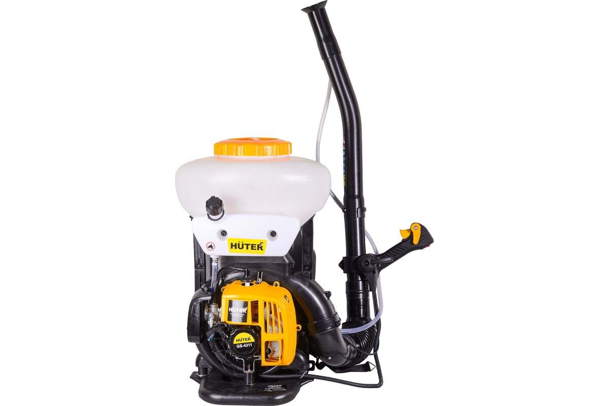Опрыскиватель бензиновый Huter GS-4311 с баком на 14 л предназначен для масштабных работ по распылению смеси воздуха и любого жидкого химиката, поможет быстро обработать сад, двор, сквер, фермерское угодье. Модель оснащена одноцилиндровым 2Т двигателем мощностью 1,5 кВт с воздушным охлаждением, который запускается с помощью ручного стартера. Емкость бензобака составляет 1,5 л. Принцип работы устройства заключается в всасывании и нагнетании воздуха через напорную трубу. Выходящий наружу мощный воздушный поток эффективно распределяет жидкость в виде мелкой взвеси на расстояние до 11 м со скоростью до 76 м/с.