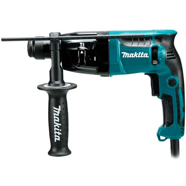 Перфоратор Makita HR1840 с патроном SDS-plus, который предназначен для быстрой смены оснастки. Имеет два режима работы – сверление и сверление с ударом, есть функции реверса и регулировки частоты вращения. Мощность агрегата 470 Вт, сила удара 1,6 Дж, частота 4800 ударов в минуту. Длина кабеля 2,5 м. Дополнительная обрезиненная рукоятка помогает распределить нагрузку и сделать рабочий процесс более комфортным. Максимальный диаметр сверления буром по бетону 18 мм, по металлу 13 мм. В комплект входят ограничительный упор и кейс для хранения/транспортировки оборудования.