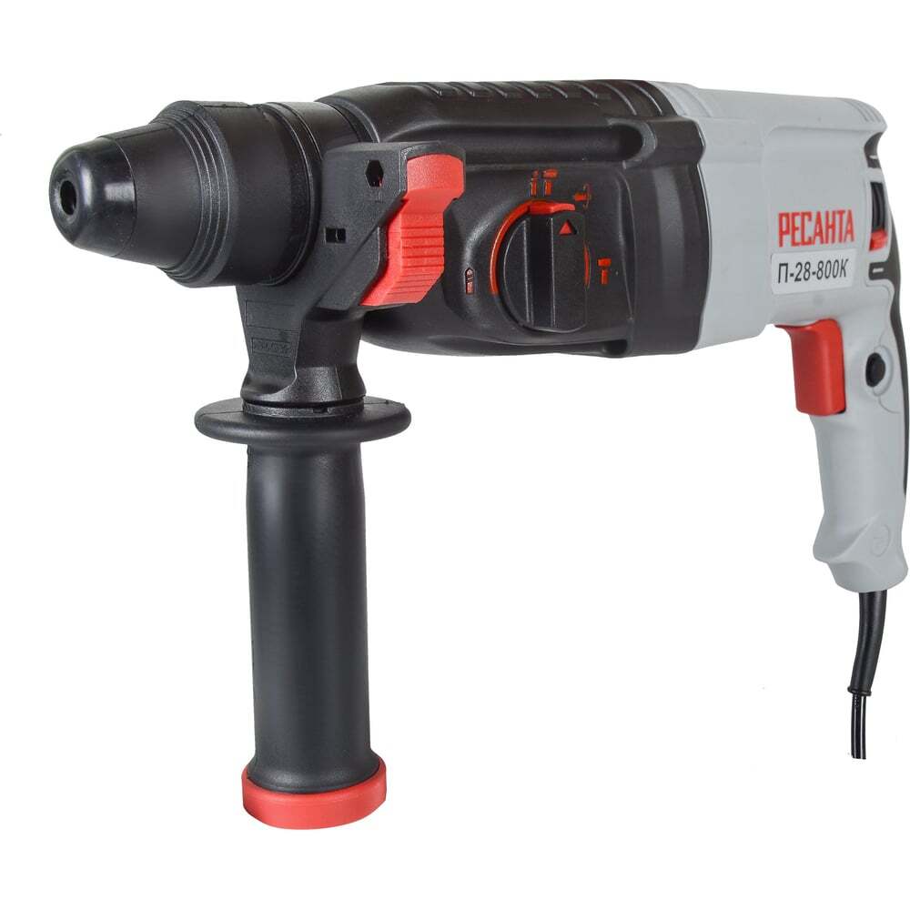 Электрический перфоратор Ресанта П-28-800К мощностью 800 Вт используется для сверления твердых материалов, таких как бетон, камень и кирпич. Частота вращения сверла 0-1100 об/мин регулируется в зависимости от плотности рабочей поверхности. Инструмент имеет 3 режима работы: сверление, сверление с ударом и функция удара с частотой 0-5200 уд/мин. Энергия удара - 3.4 Дж достаточно для продолжительной сложной работы. Хвостовик патрона типа SDS-plus обеспечивает быструю и удобную замену оснастки. Максимальный диаметр отверстий для металла 13 мм, для бетона - 28 мм, для дерева - 40 мм.Перфоратор Ресанта П-28-800К весом 2,7 кг предназначен для бытового использования. Имеет прорезиненный ударопрочный корпус. Функция реверса способствует легкому выкручиванию бура из материала при застревании. Конструкция защищена от попадания пыли. Удобство работы обеспечивает возможность настройки углового положения инструмента. Ограничитель глубины позволяет создавать отверстия с заданными значениями. Блокировка случайного включения не позволяет запускать инструмент непреднамеренным нажатием. Дополнительная рукоятка помогает правильно распределить усилия в процессе работы и снизить уровень вибрации. Прочный пластиковый кейс обеспечивает безопасное и компактное хранение инструмента.