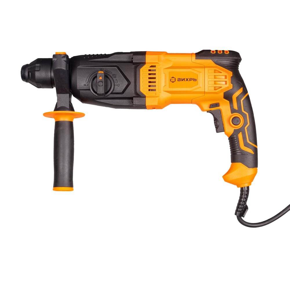 Электрический перфоратор Вихрь П-1000К с двигателем мощностью 1000 Вт предназначен для широкого спектра бытовых ремонтных и строительных работ. Патрон с креплением SDS-PLUS создан для быстрой замены оснастки диаметром до 10 мм. В зависимости от поставленных задач можно выбрать один из трех режимов: сверление, сверление с ударом или режим удара. Энергия удара 5 Дж и частота до 4900 уд/мин позволяют применять инструмент, в том числе, на бетонных и каменных поверхностях.Частота вращения регулируется в зависимости от характеристик материала. Ее максимальное значение составляет 1100 об/мин. Диаметр отверстий в древесине достигает 40 мм, в бетоне - 30 мм, в металлических заготовках - 13 мм. Функция реверса удобна в случае застревания сверла в материале. Настройка углового положения делает возможной работу в труднодоступных местах. Дополнительная рукоятка предназначена для более надежного хвата и позволяет прилагать дополнительные усилия при сверлении твердых поверхностей. Ограничительная направляющая помогает контролировать глубину отверстий.Перфоратор Вихрь П-1000К имеет щеточный двигатель, расположенный горизонтально. Это позволяет равномерно распределить вес инструмента, который составляет 3,4 кг. Блокировка кнопки включения предотвращает случайный запуск инструмента. Ее фиксация в нажатом положении полезна в процессе длительной работы. Для удобного хранения инструмента и оснастки предусмотрен прочный пластиковый кейс.