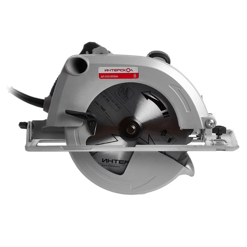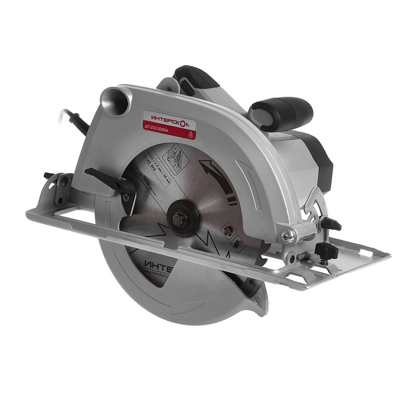Пила дисковая электрическая ИНТЕРСКОЛ ДП-235/2000М предназначена для продольного, а также поперечного распиливания древесины, материалов из древесины – фанеры, ДСП, ОСП, МДФ, других композитных материалов. При наличии специальных пильных дисков пила с легкостью справится с распиловкой пластика, цветных металлов, профилей из алюминиевого сплава, которые достаточно часто применяются при изготовлении офисных интерьеров и современной мебели. Инструмент эксплуатируется с диском, имеющим размер 235мм, что позволяет работать с пиломатериалом толщиной до 85мм.