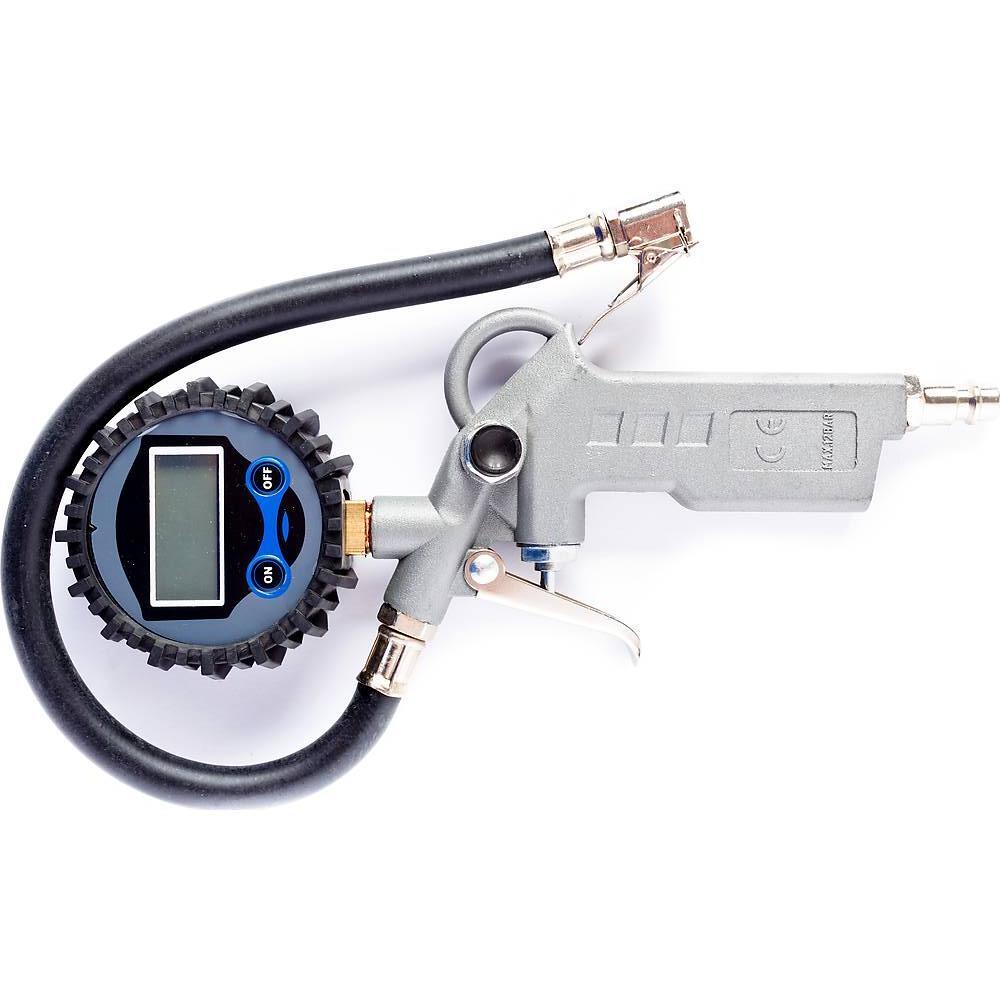Пистолет Concorde TGD35Q для подкачки шин, оснащен цифровым манометром. Незаменимый прибор в любом гараже и профессиональной автомастерской. Цифровой манометр позволяет контролировать рабочее давление. Пистолет выполнен в металлическом корпусе, который защищает механизмы от внешних воздействий, ударов при падении. Есть петля для удобного хранения оборудования. Тип соединения рапид (EURO). Максимальное рабочее давление 12 бар. Расход воздуха 140 л/мин. Диаметр воздушного штуцера 1/4F дюйм. Длина шланга 0,35 м. Вес товара 0,382 кг.