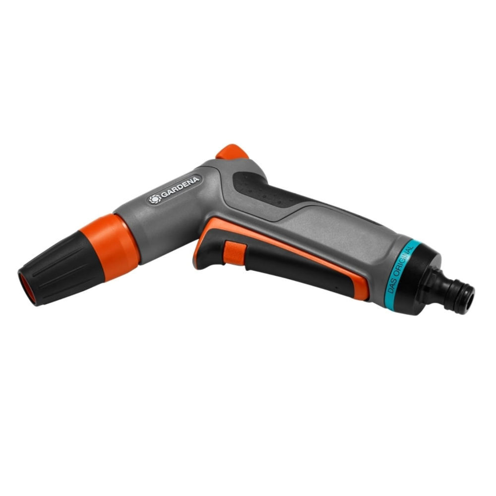 Пистолет-наконечник для полива Gardena Comfort с плавной регулировкой напора воды. Имеет два режима распыления: Hard jet (жесткая струя), Soft spray (мягкое распыление). Для непрерывного полива имеется фиксатор курка. Эргономичная рукоять с элементами из мягкого пластика обеспечивает удобный и надежный хват.