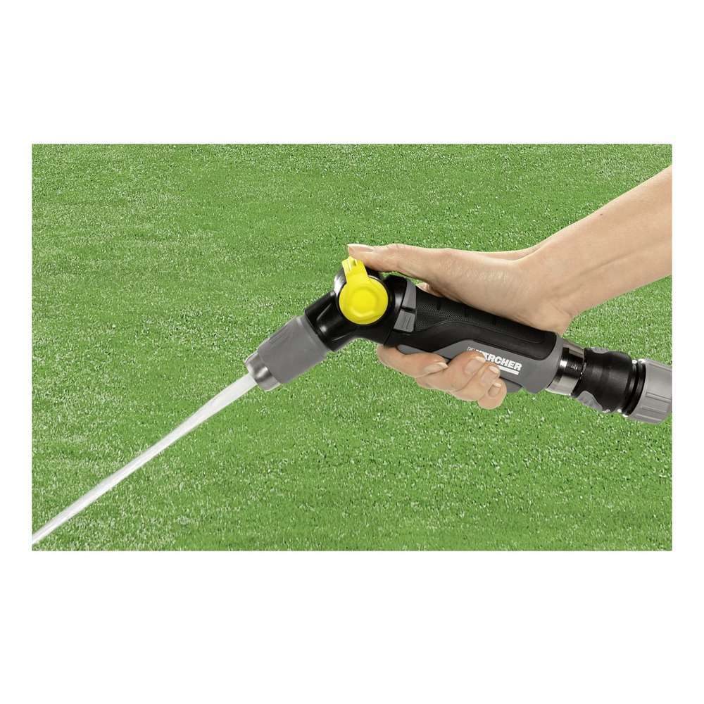 Пистолет-распылитель для полива Karcher Premium предназначен для полива клумб, грядок, кустарников, а также для очистки садовой мебели и инструмента от грязи. Модель совместима с распространёнными на рынке системами стыкового соединения и легко подключается к садовому шлангу с помощью коннектора. Имеет фиксатор для комфортного постоянного полива, плавную регулировку струи от точечной до конической. Конструкция ударопрочная и надежная, выполнена из металла, что гарантирует долгий срок службы.