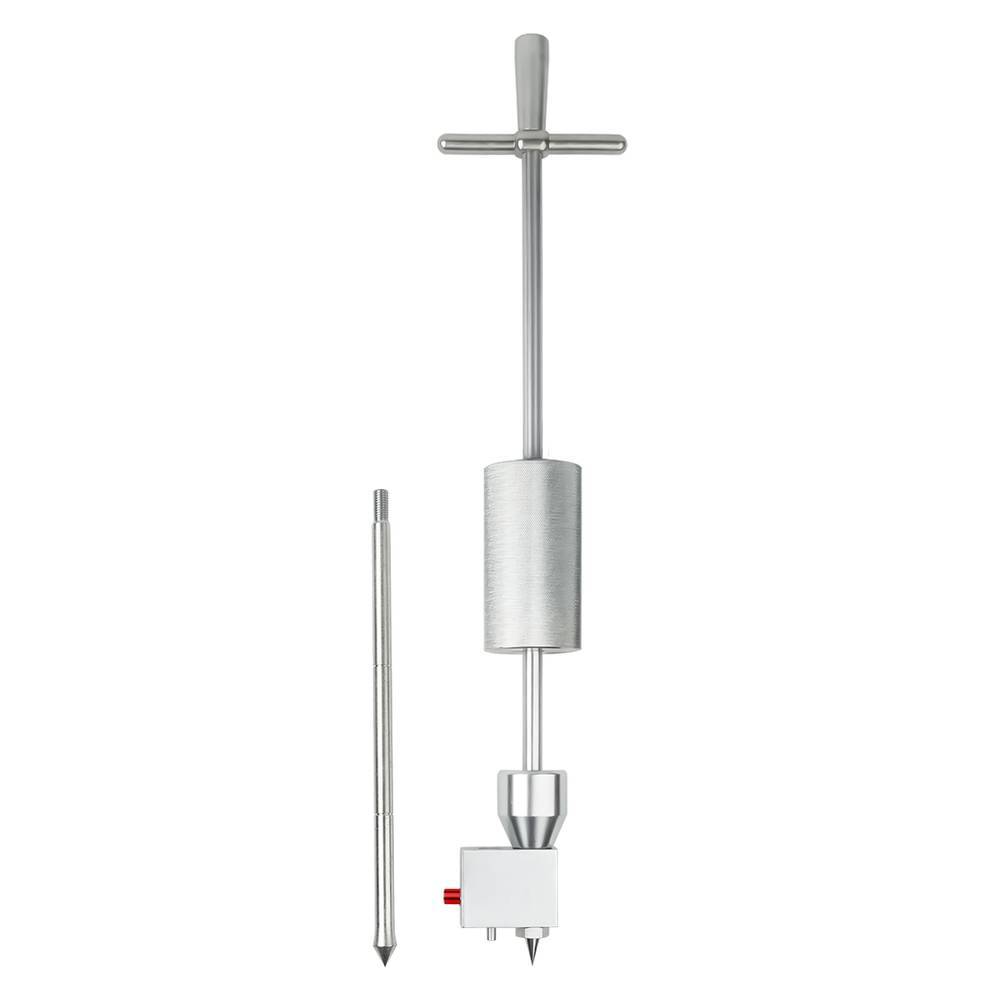 Оценка качества укладки асфальтобетона может производиться в горячем состоянии в процессе выполнения работ, а также через несколько суток, после полного остывания материала. Для этих целей инструмент оснащается сменными конусами двух типоразмеров, отличающихся высотой. Предельное заглубление заостренного элемента в поверхность покрытия фиксируется механизмом с пружинным затвором, который встроен в ограничитель, что минимизирует риск субъективных ошибок пользователя.