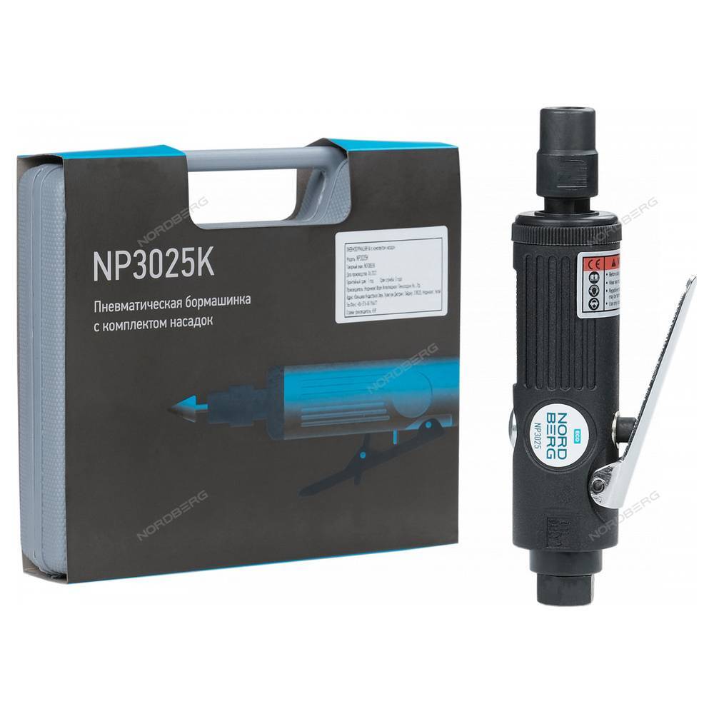 Пневматическая бормашинка NORDBERG NP3025K – пневматический инструмент для обработки деталей в труднодоступных местах. Применяется в автосервисных и производственных предприятиях, в которых есть подключение к сжатому воздуху.