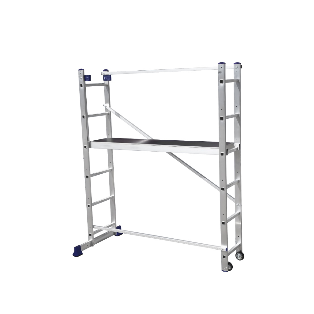 Универсальная лестница-помост Алюмет SM 6 предназначена для работы на высоте до 3,1м. Изделие может использоваться как строительная платформа и как приставная лестница длиной 2,52 м.