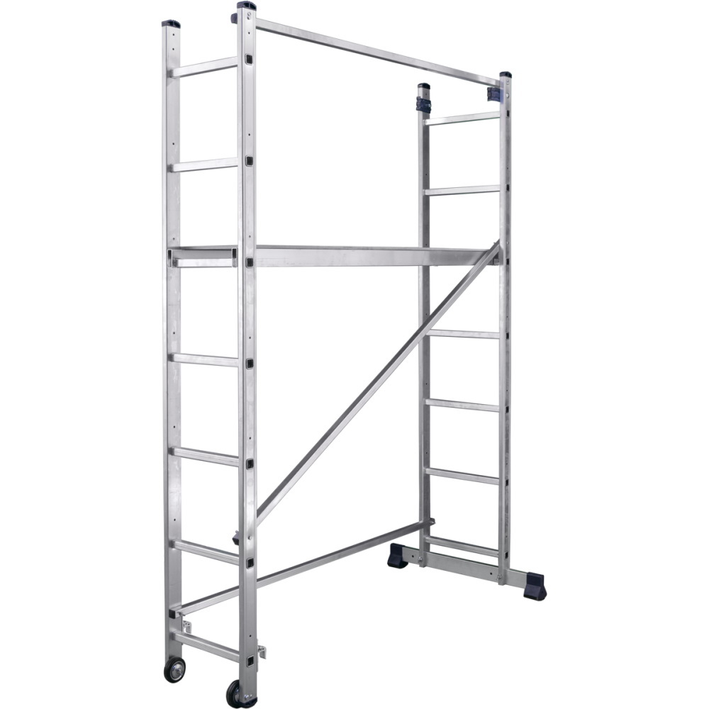 Универсальная лестница-помост Алюмет SM 7 предназначена для работы на высоте до 3,4 м. Изделие может использоваться в качестве строительной платформы и как приставная двухсекционная лестница длиной 3,08 м.