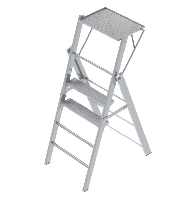 Подмости очень легкие и компактные, могут храниться в небольших углублениях от 200 мм. Сверху подмости оснащены столиком для инструмента. Максимальная нагрузка на столик - 5 кг. Максимальная нагрузка на лестницу - 120 кг.