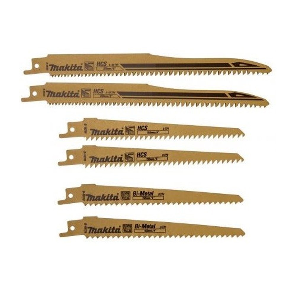 Полотно для сабельной пилы по дереву Makita B-44432 6шт – подходит для работ по дереву , в том числе по дереву с гвоздями. В набор входят: 2 пильных полотна по дереву (B-05153) HCS - 203мм, с шагом зубьев (TPI) - 6-10, 2 пильных полотна по дереву (B-05175) HCS - 152мм, с шагом зубьев (TPI) - 6 и 2 пильных полотна по дереву с гвоздями (B-16798) Bi-Metall - с шагом зубьев (TPI) – 10.