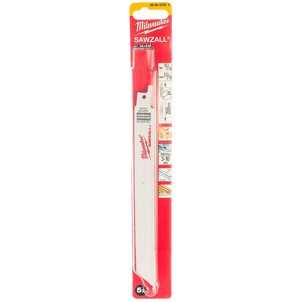 Полотно для сабельной пилы универсальное Milwaukee GP 200мм 5шт (48005293) специально разработано для использования с пилами HACKZALL 12 V. Защищает зубцы при попадании на гвоздь. Агрессивная геометрия зубцов 5 TPi убирает больше материала за один ход. Подходит для врезания и доступа в ограниченные пространства.