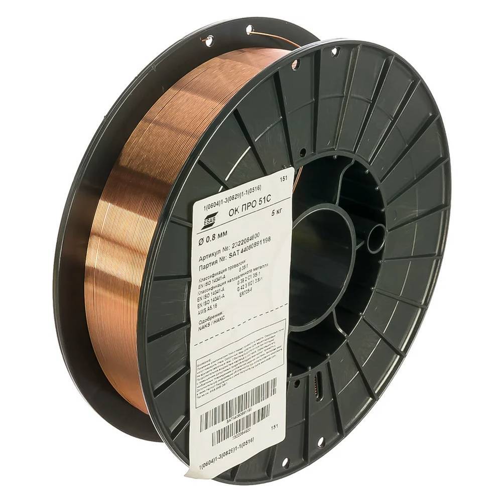 Проволока сварочная ESAB ОК ПРО 51С 0.8мм 5кг - предназначена создавать плотные и прочные швы при сварке труб, металлоконструкций, деталей техники из низколегированных и низкоуглеродистых сталей с пределом текучести от 420 Мпа. Она горит стабильно, с минимальным разбрызгиванием. В результате можно получить практически идеальное сварное соединение. Все благодаря высококачественному омеднению, стабильному диаметру по всей длине и низкому содержанию примесей в составе.