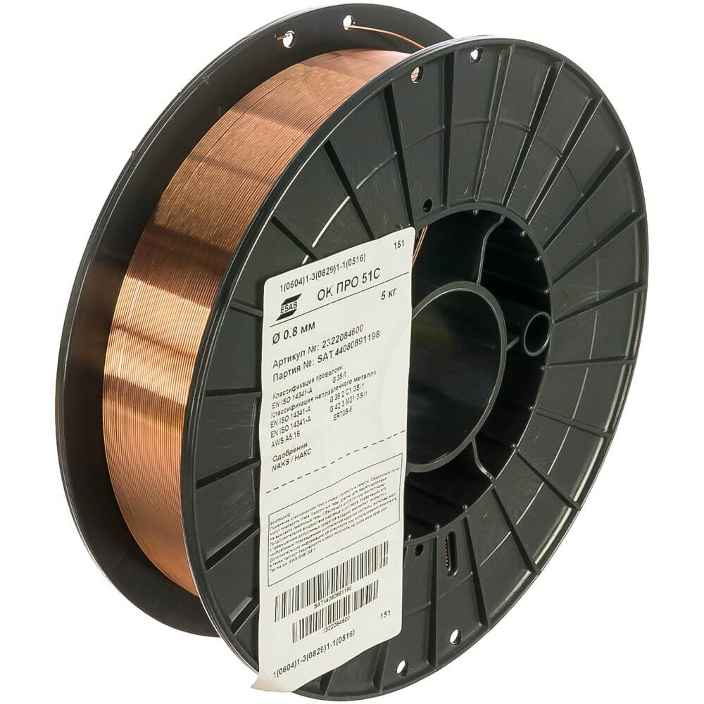 Проволока сварочная ESAB ОК ПРО 51С 0.8мм 5кг предназначена для полуавтоматической сварки в среде защитных газов углеродистых и низколегированных сталей с пределом текучести до 420МПа. Омеднение, рядная намотка на катушки, стабильный диаметр по всей длине обеспечивают стабильное горение проволоки с минимальным разбрызгиванием и высокое качество наплавленного металла. Является аналогом: