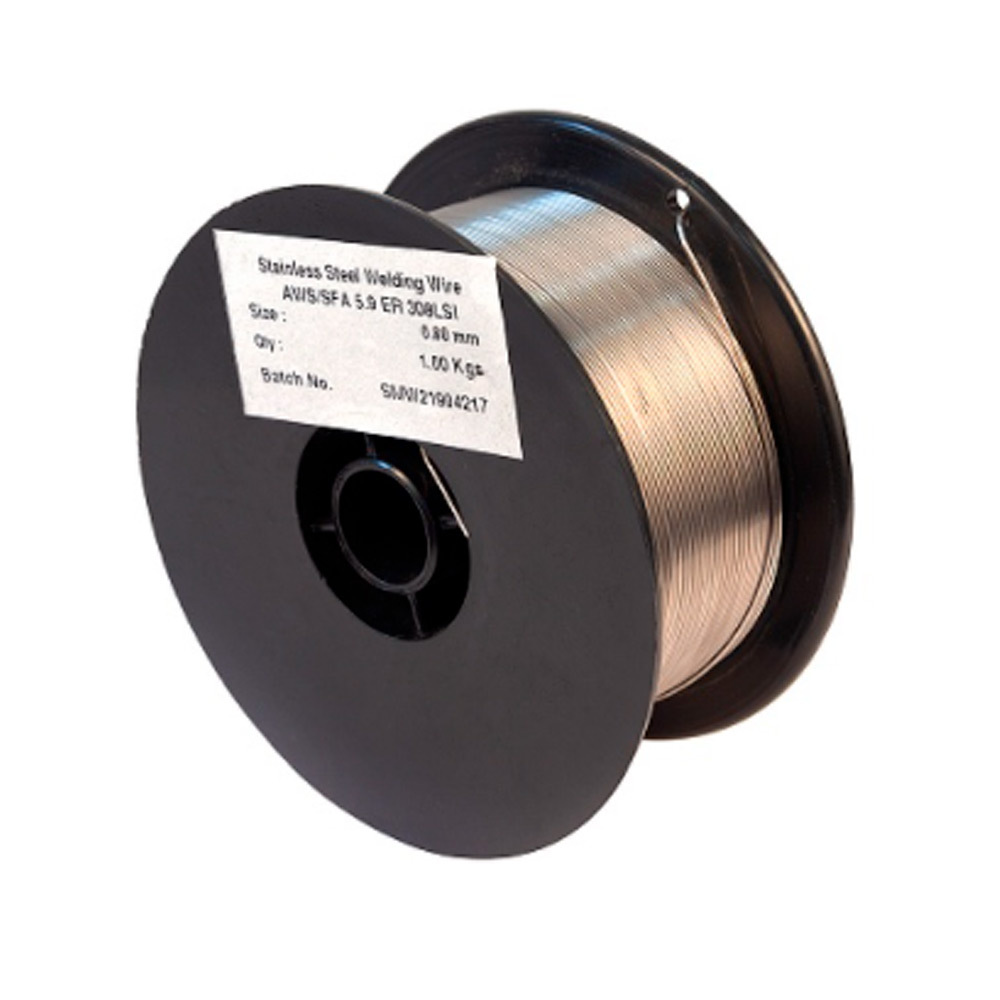 Проволока нержавеющая MIG ER-308LSi (Св-04Х19Н9Т), d. 0,8 мм (1кг) коррозионностойкая хромоникелевая сварочная проволока для полуавтоматической сварки аустенитных нержавеющих сталей c содержанием хрома ~18% и никеля ~ 8% типа 03Х17Н14М2, 03Х18Н11, 06Х18Н11, 08Х18Н10Т, 12Х18Н10Т, 304 и т.п. в среде защитных газов (Ar).