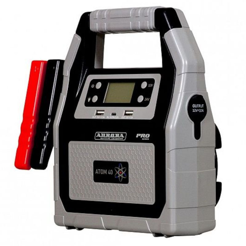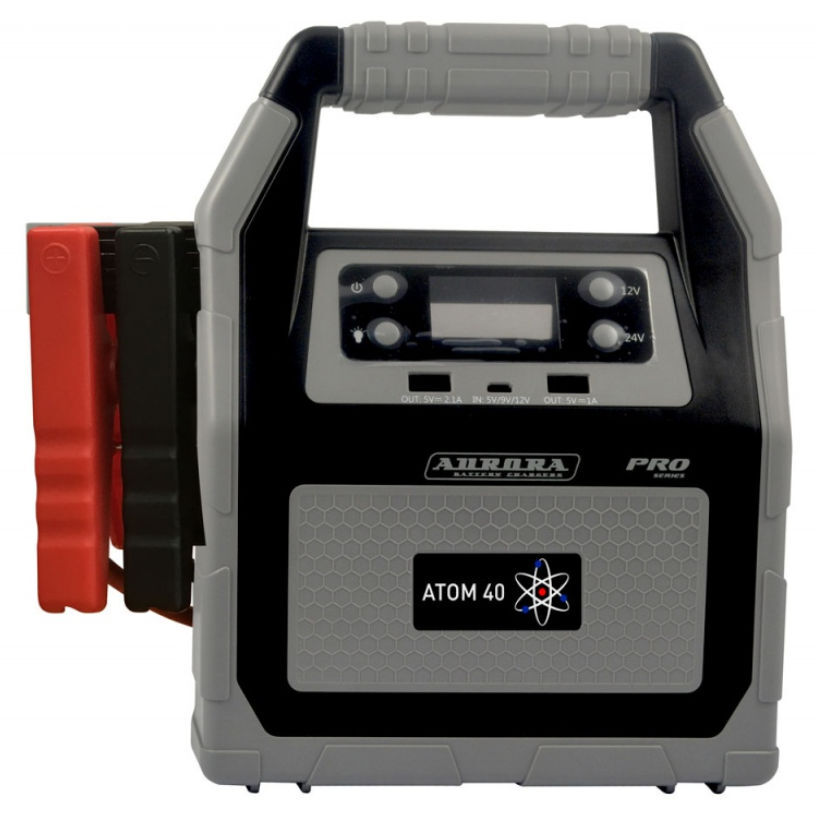 Пусковое устройство Aurora ATOM 40 многофункциональное предназначен для запуска двигателей мотоциклов, легковых машин, грузовиков и прочей техники, для питания которых используется 12/24В аккумуляторы. С помощью устройства можно заряжать и питать мобильные телефоны и планшеты. Мощный LED-фонарь поможет осветить место работы в течение нескольких суток. Режим мигания фонаря "SOS" поможет подать сигнал бедствия или предупредит других участников движения в случае неисправности фар. ATOM 40, в первую очередь, ориентирован на запуск двигателей мощных грузовиков. Функция Power Bank в данной модели, из-за особенностей конструкции пускового устройства, не сможет отдать всю ёмкость аккумуляторов на заряд портативной электроники. В режиме Power Bank устройство работает в «ограниченном режиме», при подключении потребителей через USB-порты или выход прикуривателя - из 7 банок аппарата в процессе зарядки используются только 4. Та же схема включается в работу при выборе режима пуска 12В. Из габаритной ёмкости аппарата в 40000mAh, - на зарядку гаджетов может быть потрачено максимум 18000mAh.