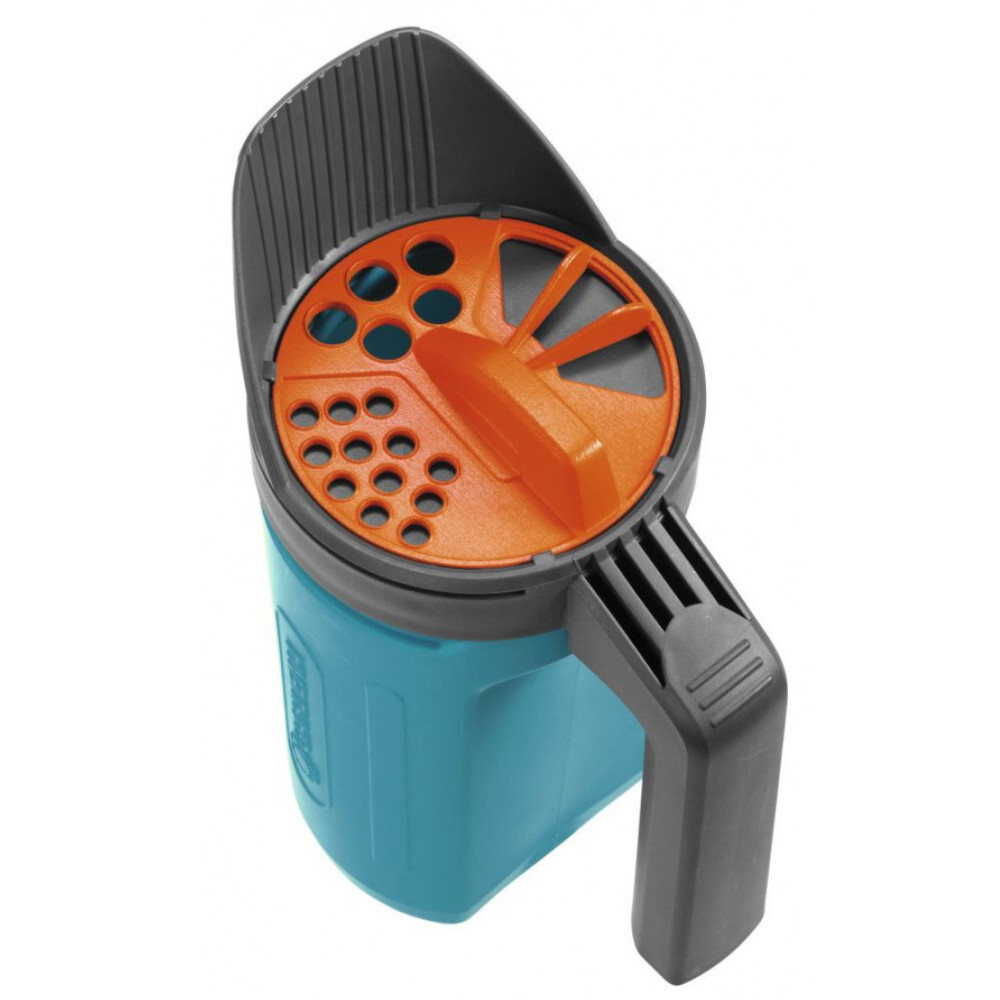 Разбрасыватель-сеялка GARDENA маленькая (03255-30.000.00) служит для распределения семян, удобрений и соли. Модель компактных размеров выполнена из ударопрочного высококачественного пластика. Примерная вместительность: удобрение – 1.65 кг, дорожная соль - 2 кг, семена - 1 кг