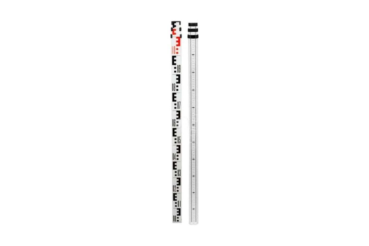 Шкала "Е" с лицевой стороны красно/черного цвета и миллиметровая шкала с оборотной стороны. Миллиметровая шкала начинает отсчет от нижней части рейки, шкала нанесена на всех 3-х секциях рейки снизу до верху. Общая максимальная высота в полностью разложенном состоянии составляет 3 метра.