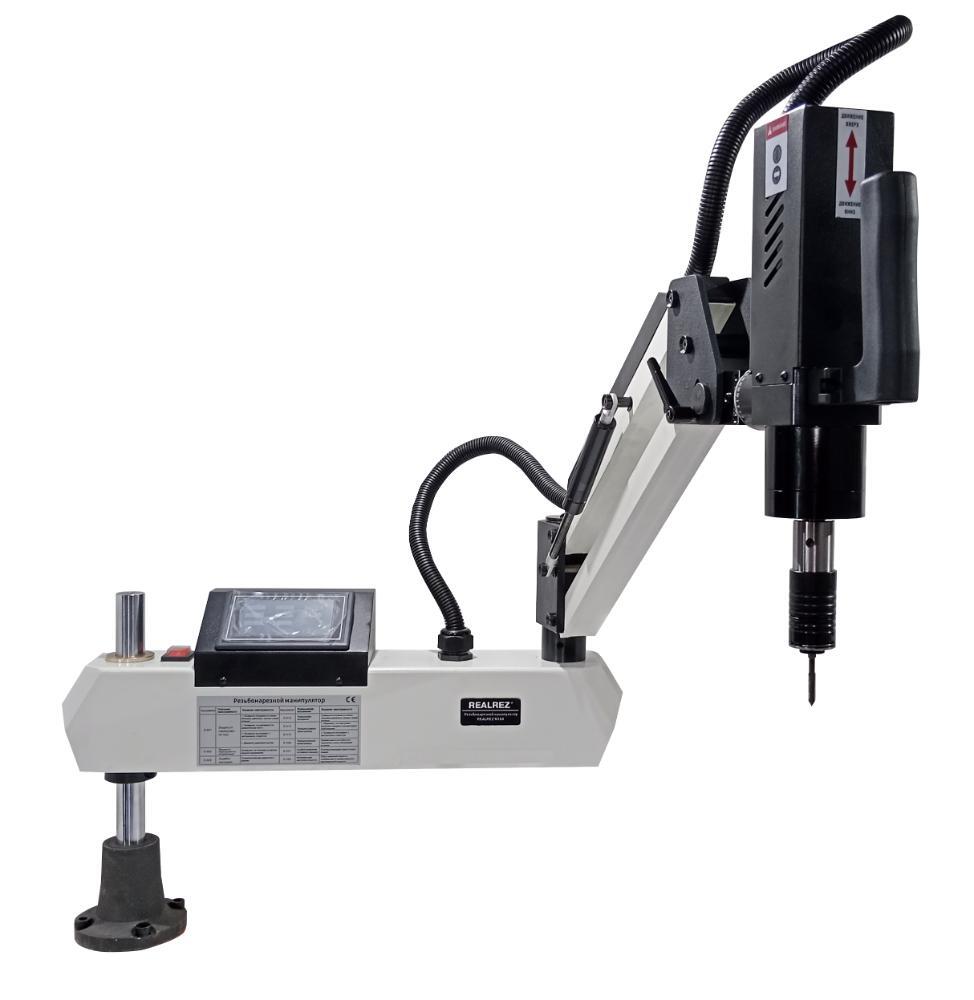 Резьбонарезной манипулятор М16S предназначен для автоматического нарезания резьбы. Обладает высокой точностью обработки и отличным темпом работы. Способен нарезать резьбу в сквозных и глухих отверстиях заготовок из стали, чугуна, цветных сплавов и пластиков.