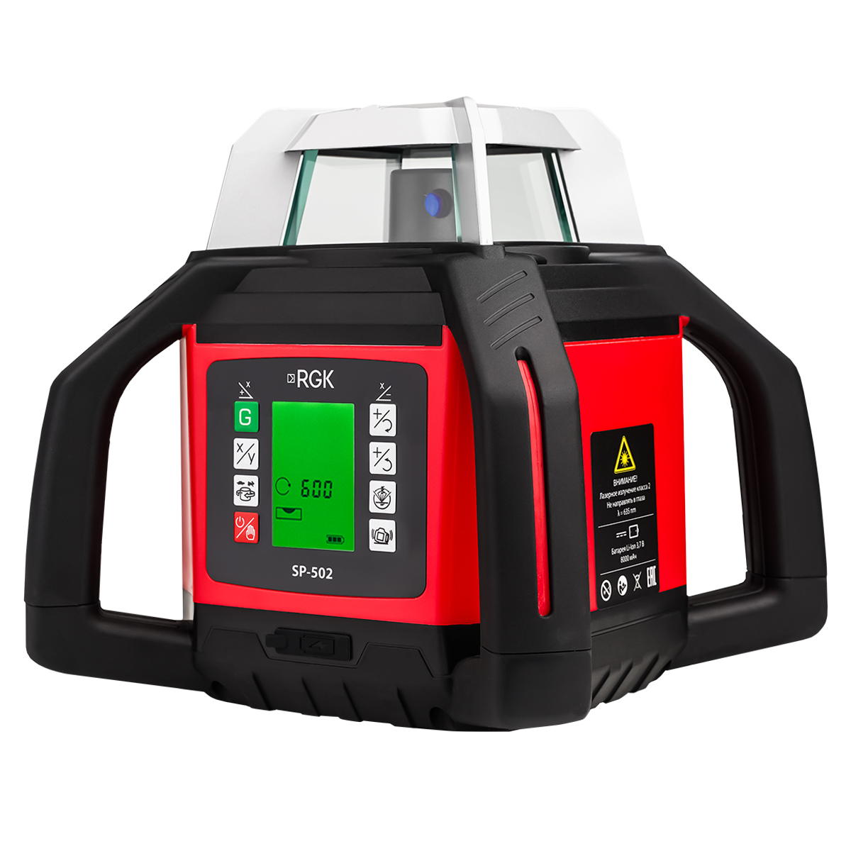 Преимущества модели - настройка наклона луча в диапазоне ±10%, минимальная погрешность ±3 мм на 30м. Ротационный лазерный нивелир RGK SP-502 позволяет выполнять выравнивание и определять разницу высот на расстоянии до 250 метров с точность ±1 мм/10 м. Главное преимущество этой модели - возможность установки наклона по двум осям в диапазоне ±10%. При этом угол наклона лазерной плоскости можно удобно задать на экране вплоть до до сотой доли процента. Эта возможность чаще всего применяется для организации грамотного водоотведения, земляных работах, обустройстве рамп и различных ландшафтных решений. Приемник с кронштейном для монтажа на нивелирную рейку входят в комплект, благодаря чему вы сразу сможете начать работать с лазерным нивелиром. Продвинутая модель приемника позволяет переключаться между тремя режимами точности - чем больше погрешность, тем проще будет поймать луч на большом расстоянии. Возможности лазера Горизонтальная плоскость для нивелирования и выравнивания. Особенно полезна при установке опалубке, монтаже потолков, заливке бетона, земляных работах. Вертикальная плоскость для контроля положения конструкций и стен, выравнивания вентфасадов. Точка зенита для более удобной разметки и переноса различных отметок. Работа под точным или произвольным наклоном. Мощный аккумулятор Ротационный лазерный нивелир RGK SP-502 комплектуется батареей, заряда которой хватает для непрерывных измерений на протяжении 45 часов. На случай непредвиденных ситуаций предусмотрена функция работы от сети. Дистанционное управление В набор входит пульт, функционал которого полностью дублирует клавиатуру прибора. Пульт позволяет изменять настройки на расстоянии до 80 м от нивелира - это больше, чем у многих аналогов. Выбор сектора сканирования Проекция линии в узком секторе делает лазерный луч ярче, что полезно для разметки на глаз, а также позволяет не мешать коллегам по объекту.