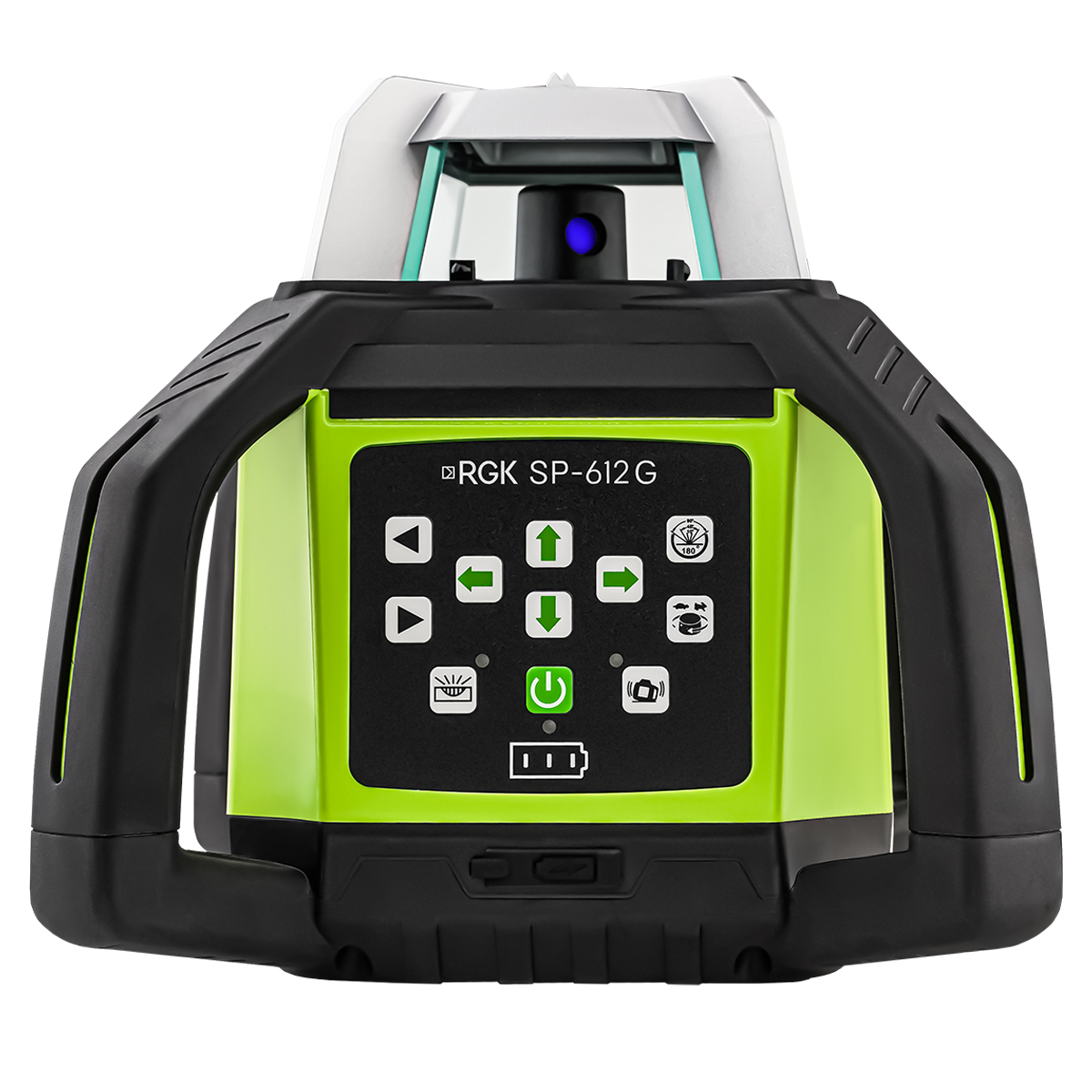 Мощный аккумулятор позволяет оборудованию проработать до 38 часов без подзарядки. Но даже когда заряд батареи иссякнет, у вас останутся два варианта - работа от батареек или от сети. Ротационный лазерный нивелир RGK SP-612G — это высокотехнологичный инструмент, который значительно упрощает работу на строительных площадках и при отделке помещений. Зеленый лазер, высокая стабильность и многофункциональность, делают его идеальным выбором для профессионалов. В отличие от традиционных красных лазеров, зеленый луч более заметен для человеческого глаза при работе в помещении, особенно на больших расстояниях и при ярком освещении. Это означает, что пользователи могут работать с большей эффективностью, не теряя времени на дополнительные настройки и корректировки. Ключевые характеристики Лазерный нивелир предлагает широкий диапазон возможностей для выполнения различных задач. С его помощью можно: Проводить нивелировку с приемником на расстоянии до 300 метров (диаметр рабочей зоны - 600 м). Работать с минимальной погрешностью - всего 1 мм на 10 метров. Устанавливать прибор в двух режимах: для создания горизонтальной или вертикальной линии. Автономность Мощный аккумулятор позволяет оборудованию проработать до 38 часов без подзарядки. Но даже когда заряд батареи иссякнет, у вас останутся два варианта - работа от батареек или от сети. Исключительная стабильность Одним из главных преимуществ модели является его мощный сервоприводный компенсатор. Этот механизм эффективно гасит вибрации, возникающие от тяжелого строительного оборудования и ручных инструментов. В результате, лазерная линия остается стабильной и четкой, что существенно упрощает процесс разметки и нивелировки. Зенит и отвес RGK SP-612G оборудован двумя яркими точками, которые помогают точно установить прибор на стройплощадке. Это значительно упрощает перенос отметок с пола на потолок и разметку прямых углов. Таким образом, строители могут быстро и без лишних усилий выполнять задачи, требующие высокой точности.