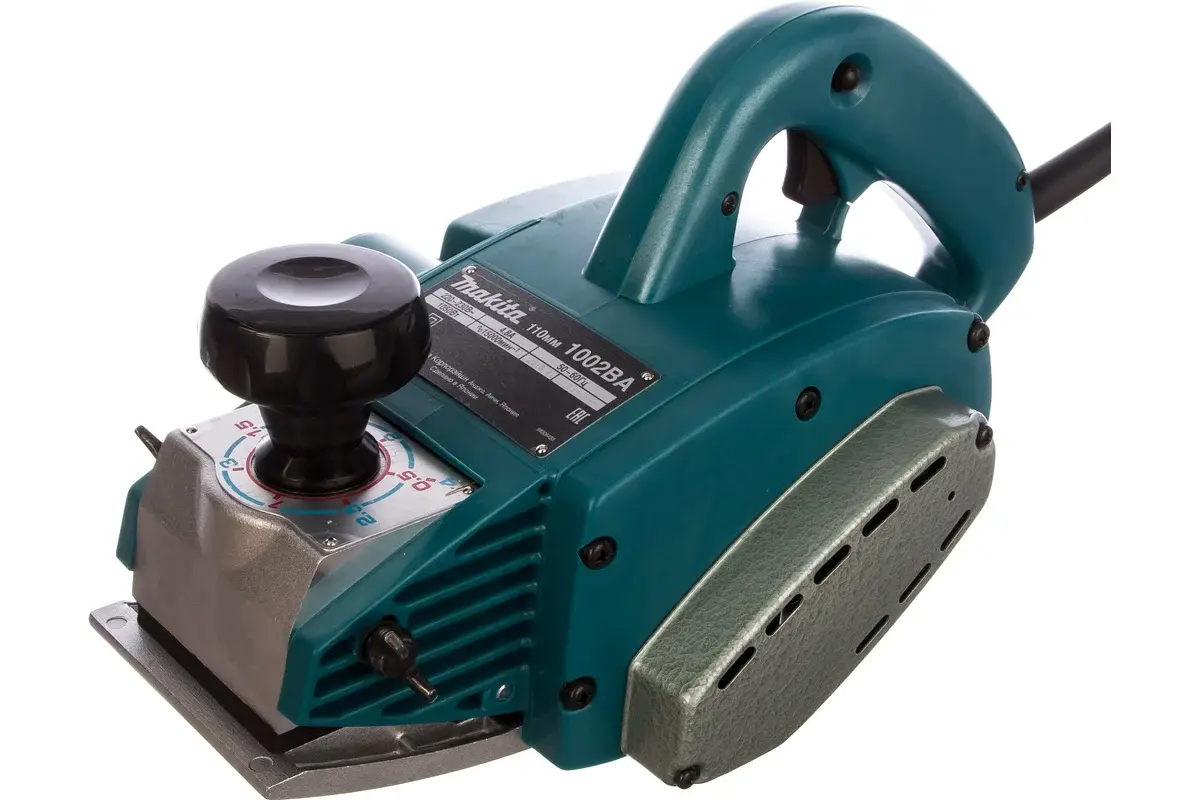 Электрический рубанок Makita 1002BA предназначен для обработки вогнутых поверхностей с максимальным радиусом кривизны 300 мм. Инструмент используется для грубого и чистого строгания, снятия фасок и выборки пазов.