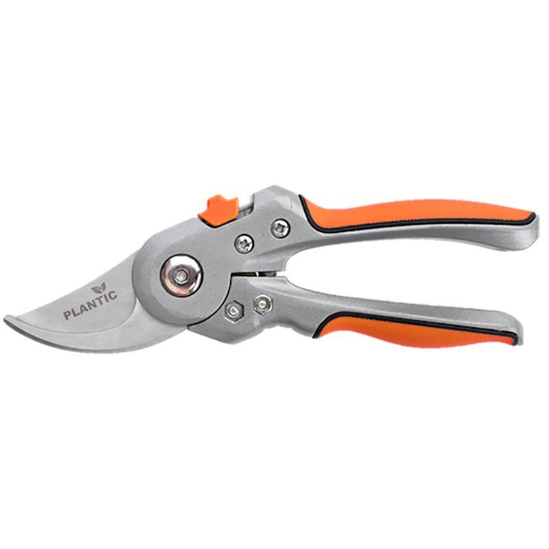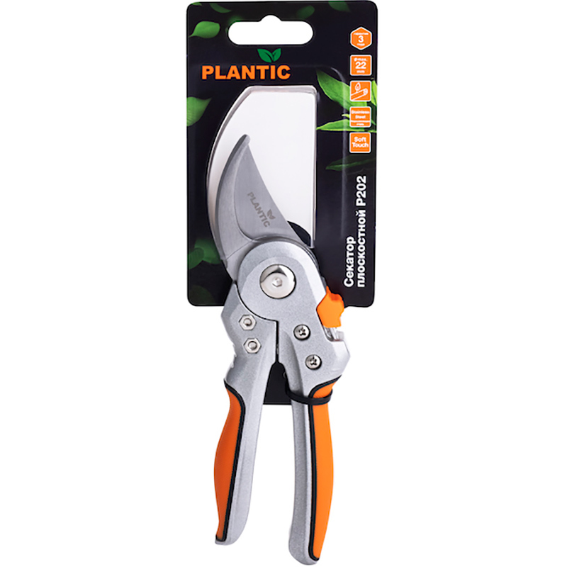Секатор Plantic P202 для обрезки свежей и мягкой древесины. За счет лезвий из нержавеющей стали секатор также можно использовать для обрезки сухих, старых веток. Рукоятки из литого алюминия покрытые материалом SoftTouch обеспечивает комфортный захват. Регулируемый механизм блокировки со стопором: лезвия секатора легко заблокировать одной рукой.