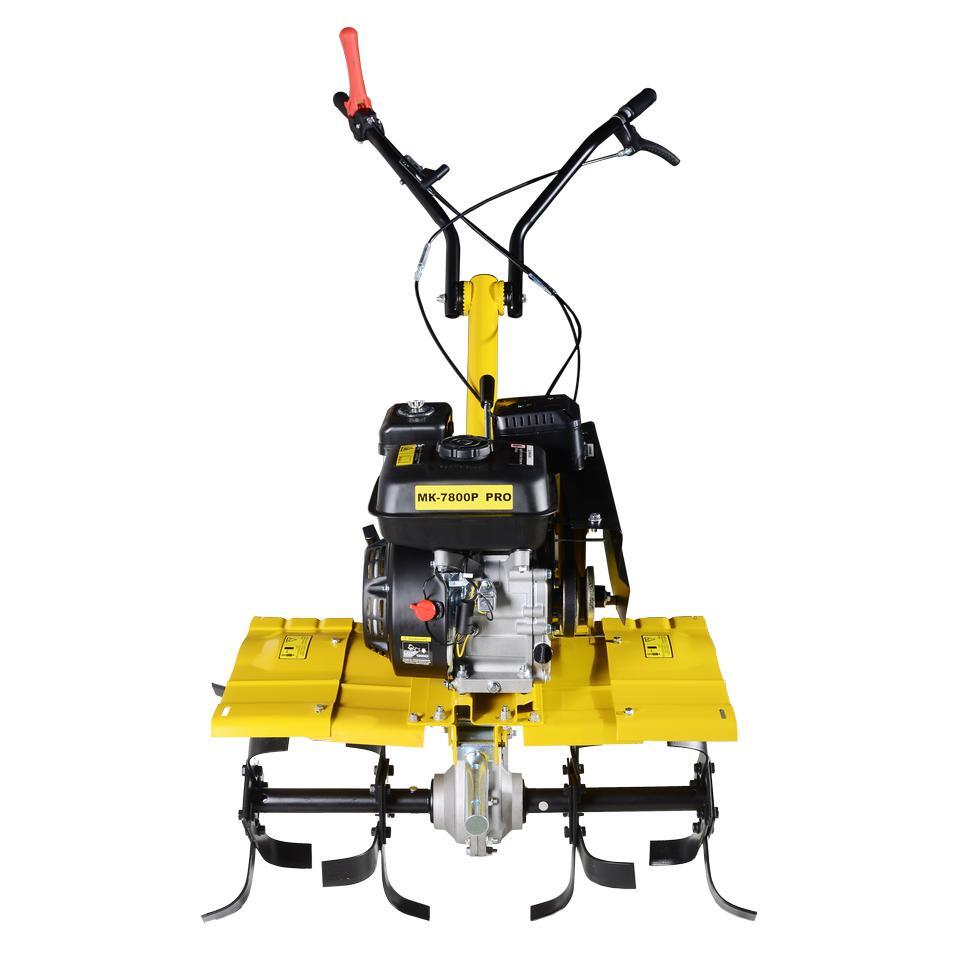 - Двигатель мощностью 7,8 л.с. подходит для обработки почв любого характера, включая целинную;