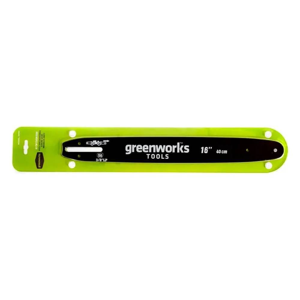 Шина Greenworks 40см 3/8"1.1мм 56зв (29757) используется с аккумуляторной пилой Greenworks 40V арт. 20077 при проведении различных работ по распилу древесины. Шина выполняет роль остова для цепи и является ее направляющей.
