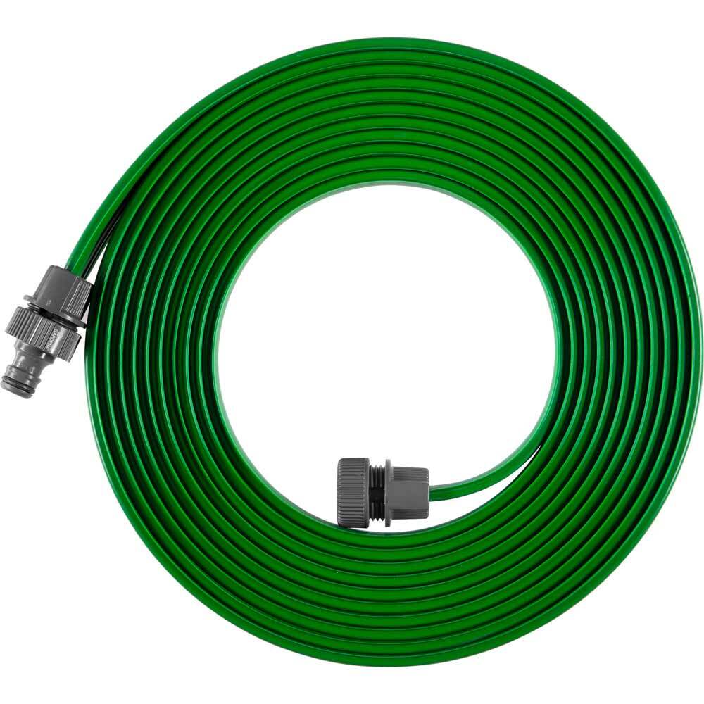 Шланг-дождеватель Gardena предназначен для бережного полива капризных растений и саженцев, а также для орошения бордюров и узких участков. Шланг длиной 7,5 м зеленого цвета не заметен на газоне.