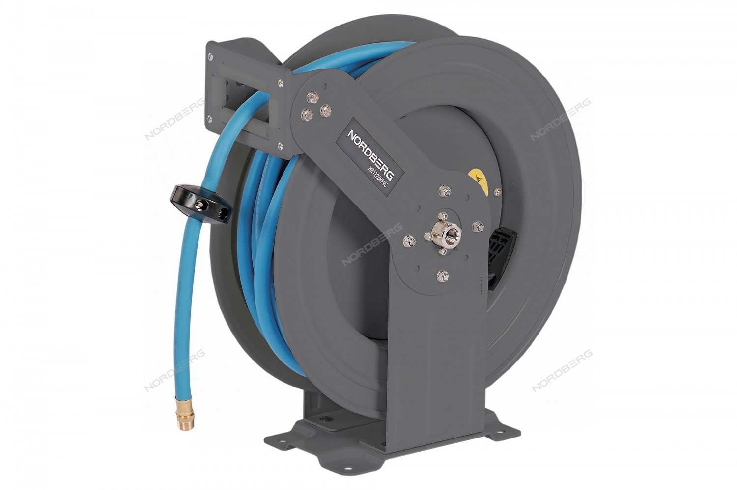 - Автоматической катушкой, которая не позволяет шлангу запутаться или перетираться, что значительно облегчает работу с пневмоинструментом.