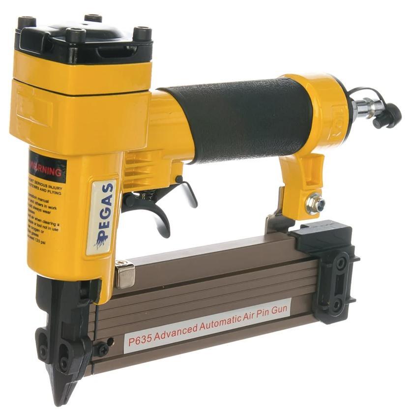 Шпилькозабивной пистолет Pegas pneumatic Р635 + доп боек представляет собой оборудование, использующее энергию сжатого воздуха для забивания шпилек (штифтов), с сечением 0,64мм и длиной от 10-35мм, без участия человеческой силы. Тип шпильки Gauge 23. Штифтозабивной пневмопистолет Pegas pneumatic P635 предназначен для изготовления мебели, дверей, окон, монтажа шкафов и выдвижных ящиков, изготовление конструкций лодки, опалубки, изготовления обуви, сборки панелей и рам, установки обивки, декоративного оформления. Пистолет оснащен системой защиты от случайного выстрела, регулировкой глубины забивания. Удобный задний упор облегчает правильную установку инструмента при работе. Рифлёная резиновая рукоятка для удобства работы. Тонкий нос для облегчения работы в труднодоступных местах. Рукоятка с наклоном снижает усталость во время работы. Отличная эргономика. Высокая скорость перезаряжения шпилек.