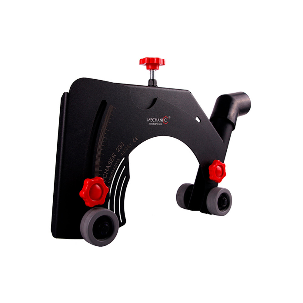 Насадка-штроборез AirCHASER 230 предназначена для нарезания штроб под электропроводку, водоснабжение, канализацию в бетонных, кирпичных и других поверхностях. Универсальная система крепления позволяет легко установить насадку на углошлифовальную машину любой модели и любого производителя. Пластиковые колеса обеспечивают плавность перемещения по поверхности. Аэродинамическая система и щеточный уплотнитель эффективно отбирает пыль из зоны резания. Открытая конструкция обеспечивает полный обзор зоны резания и эффективное охлаждение диска. Малый вес в сравнении с существующими штроборезами существенно облегчает работу. Прочный металл и ребра жесткости делают конструкцию жесткой и надежной. Резиновый патрубок позволяет подключать пылесосы различных производителей.