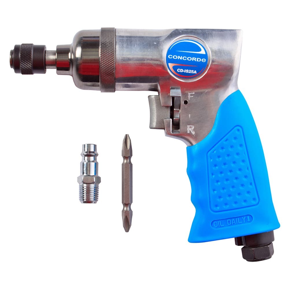 Пневматический шуруповёрт применяется в различных мастерских и в сборочных цехах для закручивания и выкручивания крепежных элементов: шурупов, винтов, саморезов. Рукоять с нескользящим покрытием (резиновая накладка), а также выступ на ее основании предотвращают выскальзывание инструмента из руки оператора.