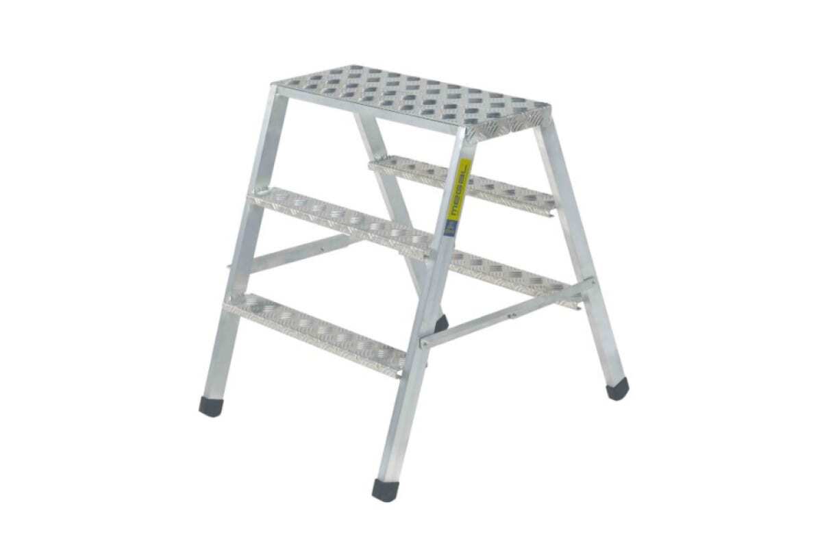 Широкие ступени глубиной 85 мм изготовлены из рифленого алюминиевого листа. Комфортная рабочая площадка выполнена из противоскользящего материала – лист рифленый «квинтет». Размер площадки 600х230 мм.