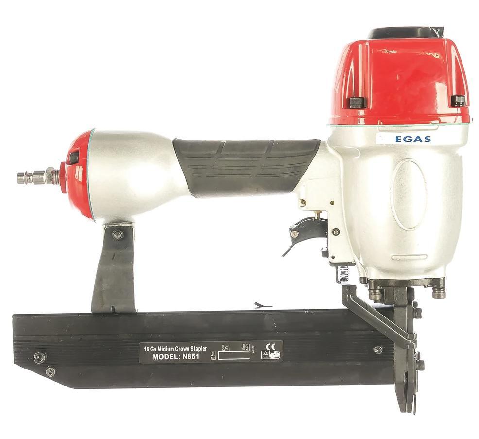 Скобозабивной пистолет Pegas pneumatic N851 - профессиональный промышленный степлер для интенсивной работы. Самый популярный каркасный пневмопистолет среди мебельщиков. Мощный, надежный и долговечный. Инструмент хорошо зарекомендовал себя на производствах мягкой мебели. Отличается высокой мощностью и отличной производительностью. Может использоваться для изготовления мебельных каркасов, сборки мягкой и корпусной мебели, крепление панелей, досок, молдингов, раскладок, производства ящиков, коробок, дверных и оконных элементов, акустических колонок и т.д. Работа на сжатом воздухе предусматривает большой рабочий ресурс. Прочная конструкция пистолета надежно защищает внутренние элементы от механических повреждений. Эргономичная рукоятка снижает усталость во время работы. Работает со скобами совместимыми с Senco N, Haubold KG.