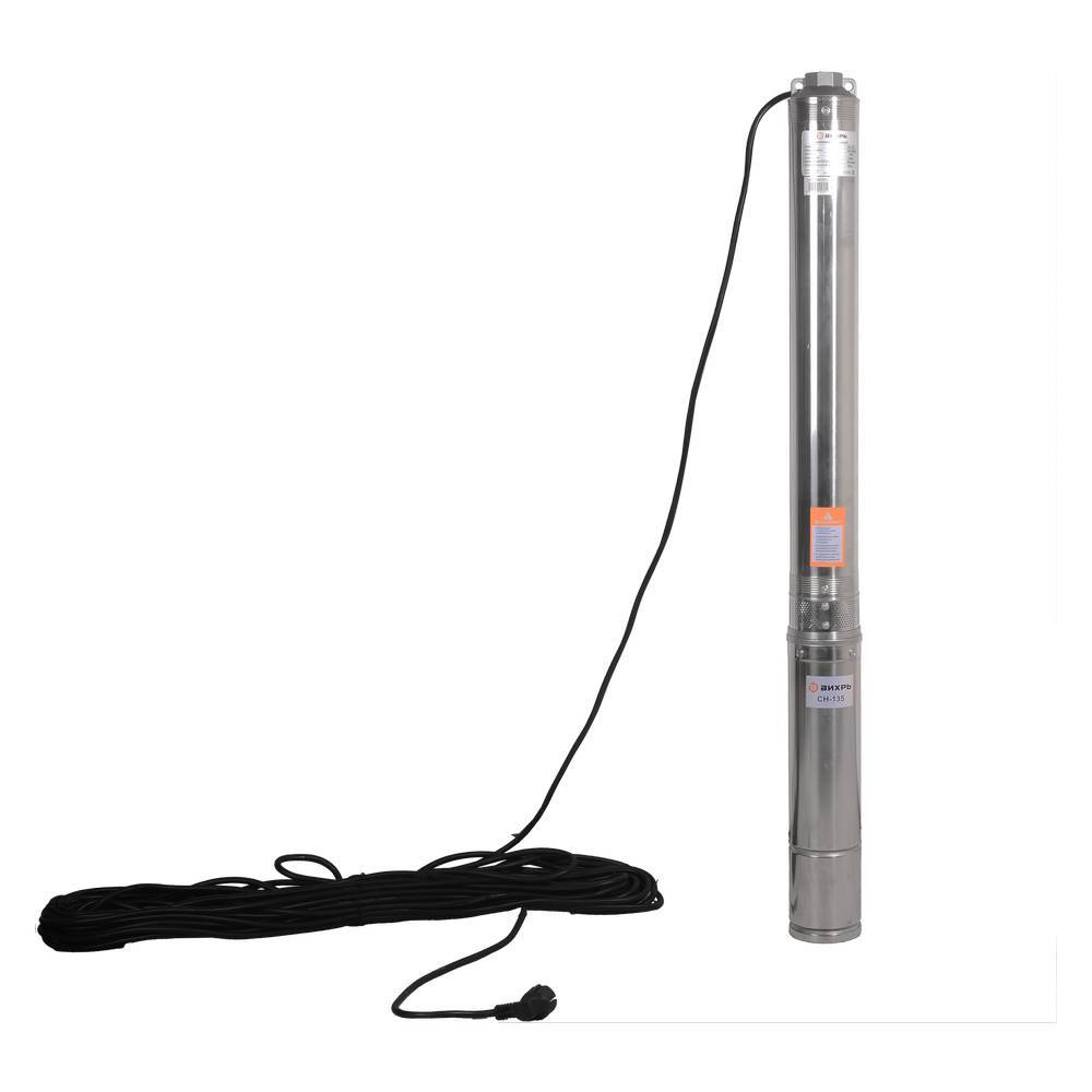 Вихрь СН-135 – скважинный насос центробежного типа мощностью 1800 Вт, он обеспечит подачу воды на высоту до 135 м из резервуара, колодца, артезианской скважины с производительностью 95 л/мин.