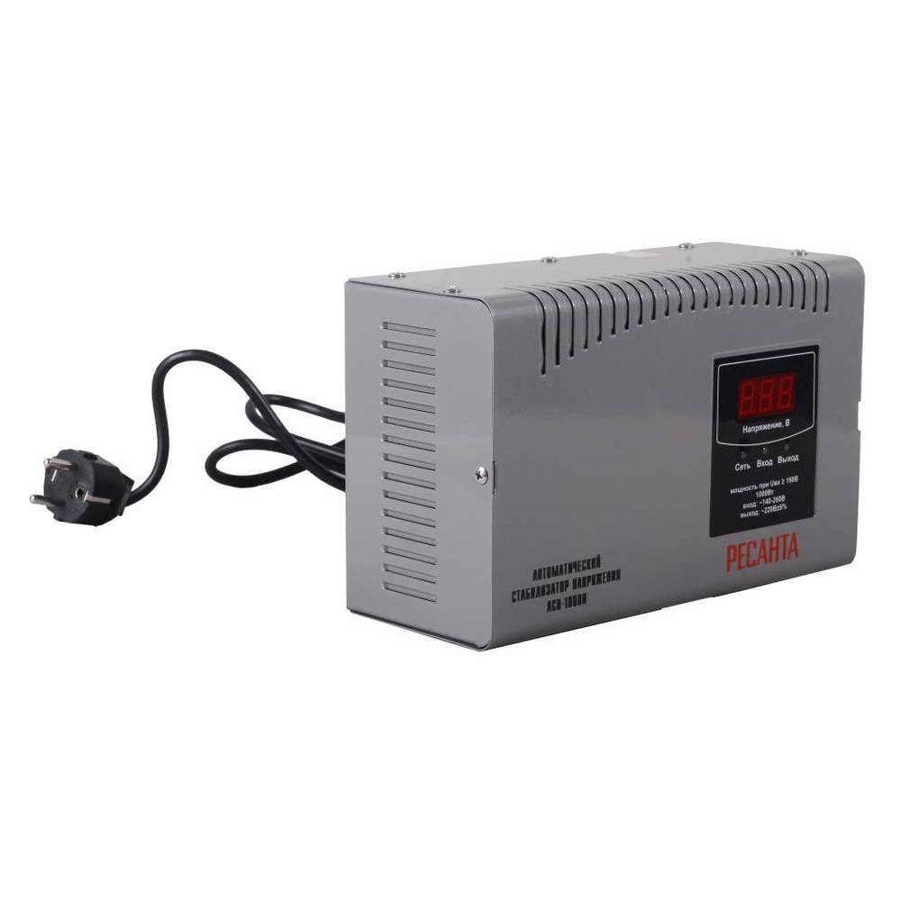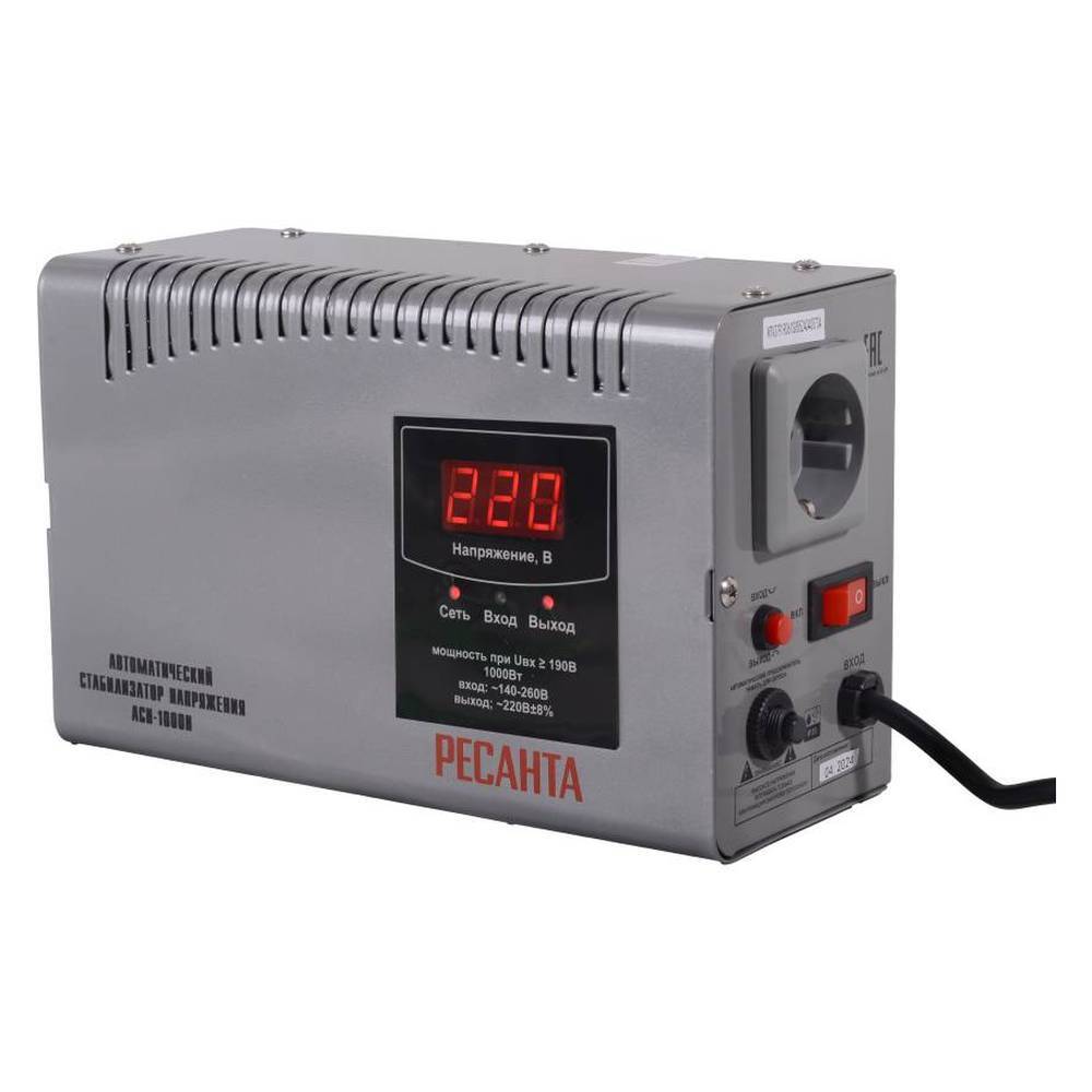 Стабилизатор напряжения Ресанта АСН-1000 Н релейного типа предназначен для выравнивания входного напряжения и защиты приборов от перепадов напряжения с суммарной мощностью до 1000Вт. Работает с напряжением 220В с точностью до +/-8%. Устройство оснащено фильтрами сетевых помех, предотвращающими искажение частотной синусоиды, микропроцессорным управлением и цифровым индикатором напряжения, на котором отображаются параметры напряжения. Превышение пределов поддерживаемого входного напряжения автоматически отключает подачу питания. Прочный корпус защищает внутренние узлы аппарата от повреждений. Данный стабилизатор может обеспечивать стабильным питанием - телевизор, ресивер, DVD проигрыватель, кассовый аппарат, газовый котел.