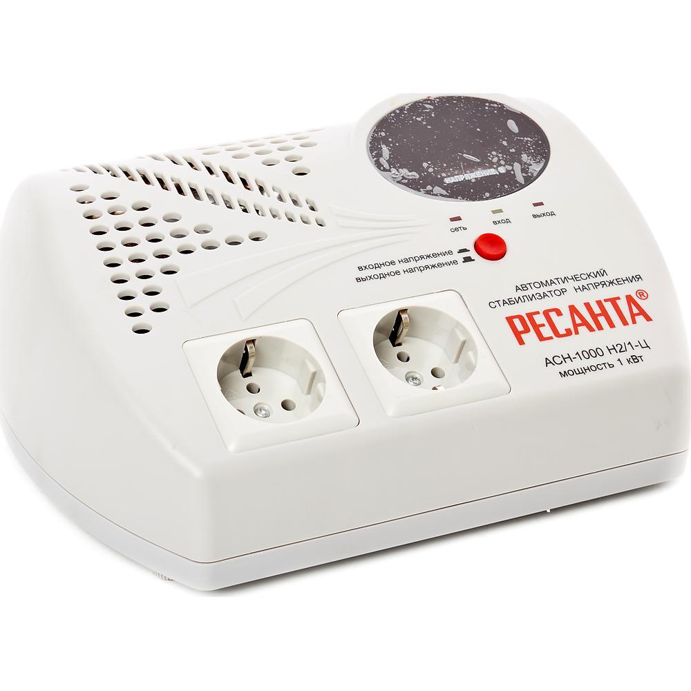 Стабилизатор напряжения серии LUX РЕСАНТА АСН-1000Н2/1-Ц релейного типа предназначен для выравнивания входного напряжения и защиты приборов от перепадов напряжения с суммарной мощностью до 1 кВт. Работает с напряжением 220В с точностью до +/-8%. Устройство оснащено фильтрами сетевых помех, предотвращающими искажение частотной синусоиды, микропроцессорным управлением и цифровым индикатором напряжения, на котором отображаются параметры напряжения. Превышение пределов поддерживаемого входного напряжения автоматически отключает подачу питания. Прочный корпус защищает внутренние узлы аппарата от повреждений. Данный стабилизатор может обеспечивать стабильным питанием - телевизор, ресивер, DVD проигрыватель, кассовый аппарат, газовый котел.