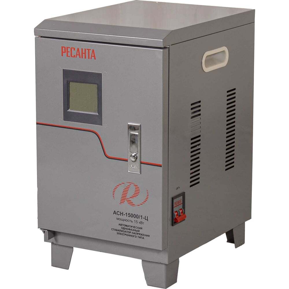 Стабилизатор напряжения Ресанта АСН-15000/1-Ц позволяет предупредить выход из строя электротехники из-за скачков напряжения электросети. Устройство обеспечивает стабильное напряжение в 220 В (допустимые отклонения не превышают 8%) вне зависимости от характеристик электросети. Может использоваться в бытовых и промышленных целях. Может применяться для подключения системы кондиционирования или котлов отопления, а также других мощных приборов. Суммарная мощность подключаемых устройств не должна превышать 15 кВт.Стабилизатор напряжения релейного типа практически моментально реагирует на изменения параметров электросети. Скорость реакции составляет всего 15 мс, поэтому он обеспечивает стабильную работу подключенных приборов. Преимуществом устройства считается широкий диапазон входного напряжения – от 140 до 260 В. Стабилизатор Ресанта АСН-15000/1-Ц комплектуется фильтром сетевых помех и цифровым индикатором, имеет микропроцессорное управление. Внутренние компоненты помещены в прочный корпус, который обеспечивает защиту от механических повреждений. Вес устройства составляет 23 кг, но для удобства его перемещения предусмотрены колесики.