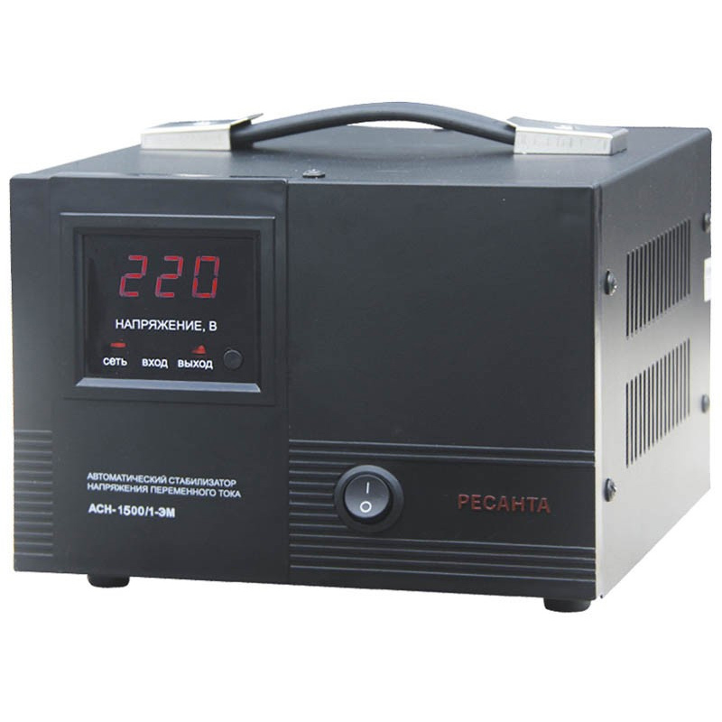 Стабилизатор напряжения РЕСАНТА АСН-1500/1-ЭМ электромеханического типа предназначен для выравнивания входного напряжения и защиты приборов от перепадов напряжения с суммарной мощностью до 1,5 кВт. Работает с напряжением 220В с точностью до +/-2%. Устройство оснащено фильтрами сетевых помех, предотвращающими искажение частотной синусоиды, микропроцессорным управлением и дисплеем, отображающим параметры напряжения. Превышение пределов поддерживаемого входного напряжения автоматически отключает подачу питания. Прочный корпус защищает внутренние узлы аппарата от повреждений. Прибор может обеспечивать стабильным питанием - телевизор, ресивер, DVD проигрыватель, кассовый аппарат, газовый котел.