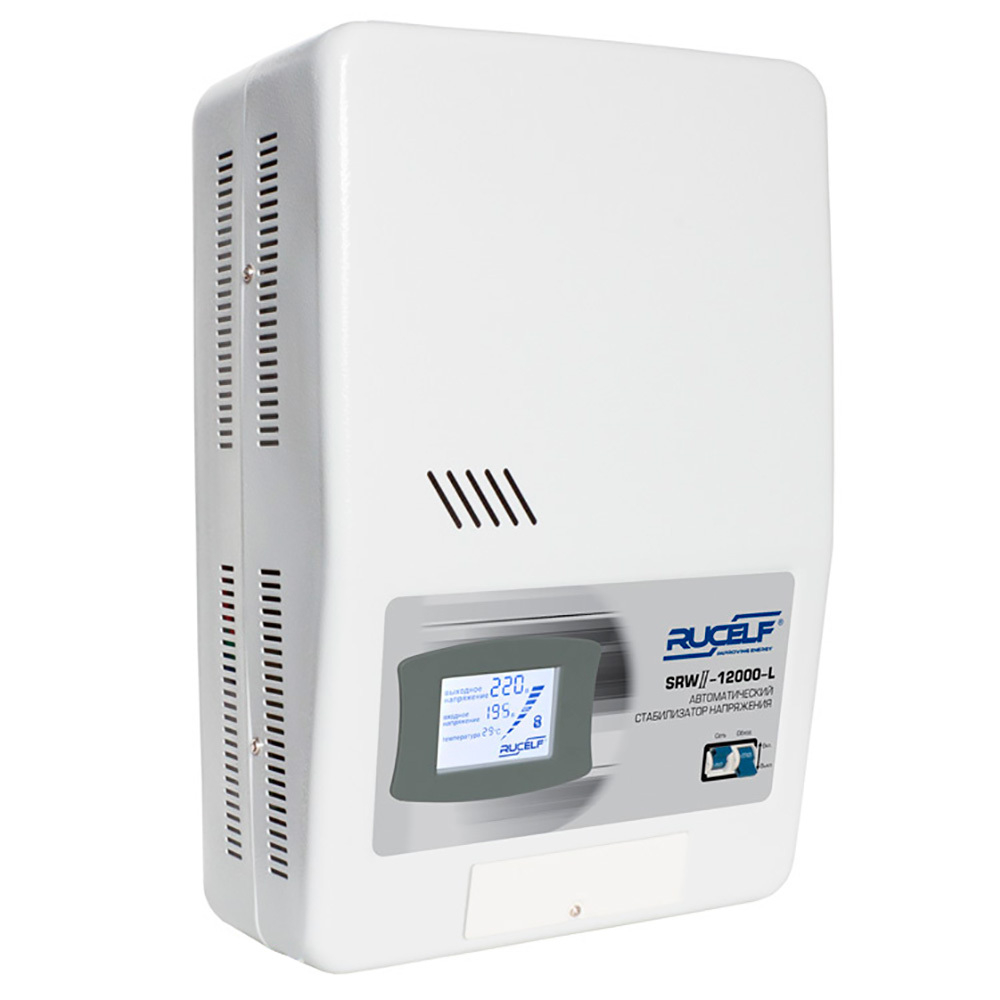 Стабилизатор напряжения RUCELF SRW.II-12000-L релейный представляет собой сложное техническое устройство, управляемое микропроцессором. Оно способно контролировать входящее напряжение и, при необходимости, напрямую взаимодействовать с трансформатором. Навесная конструкция позволяет располагать устройство в любом помещении, даже в условиях ограниченного пространства. Точность его стабилизации составляет 6%.