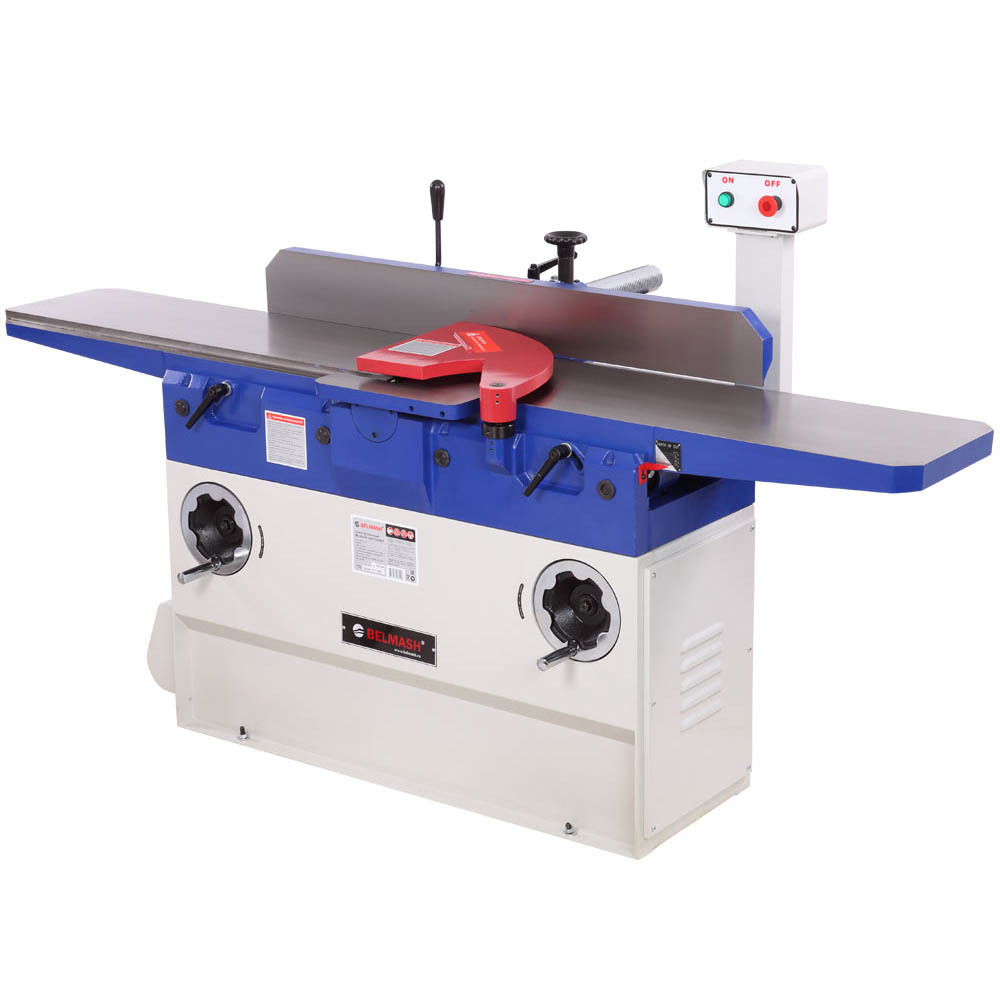Один из самых крупных и мощных фуговальных станков, представленных на данный момент под брендом BELMASH. Максимальная ширина обработки 305 мм. Все рабочие поверхности изготовлены из чугуна. Длина загрузочного/ приемного столов составляет - 1036/1036 мм. Станок оснащен литым защитным кожухом ножевого вала, также в комплекте имеются специальные упоры для подачи заготовки. Возможна замена ножевого вала на вал Helical.
