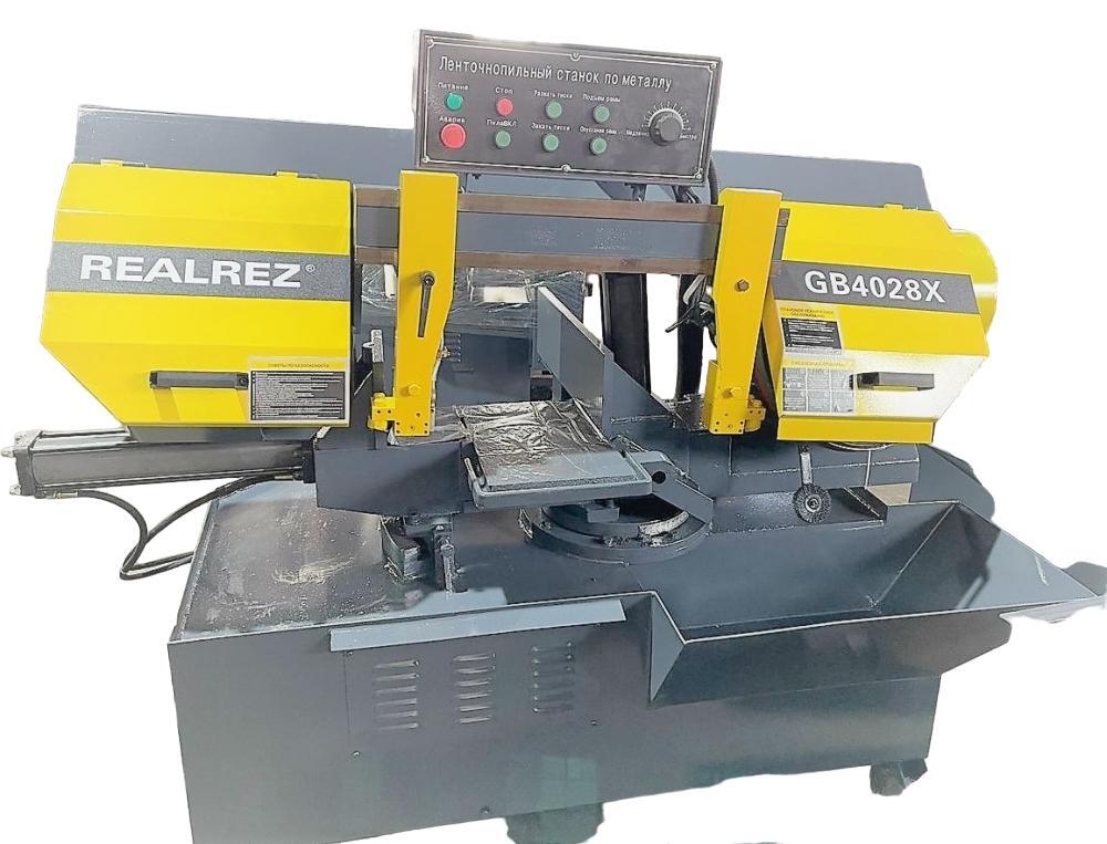 Станок ленточнопильный полуавтоматический REALREZ GB4028X предназначен для распиловки заготовок под углом 90 градусов, а также для угловой резки 45 градусов. Резка заготовки под углом осуществляется при помощи поворота рамы. Данный станок это идеальное решение для распиловки профилей и труб, которые необходимо разрезать под углом. Высокий вес станка а также ширина пилы 34мм позволяет делать качественный рез с высокой скоростью. станок обородован защитой: при обрыве полотна станок сразу же останавливает работу.