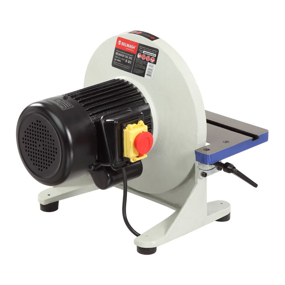 Дисковый шлифовальный станок Belmash DG-305 предназначен для шлифования заготовок из дерева. Корпус и основание из чугуна придают конструкции прочность. Рабочий стол с Т-пазом позволяет установить угловой упор.